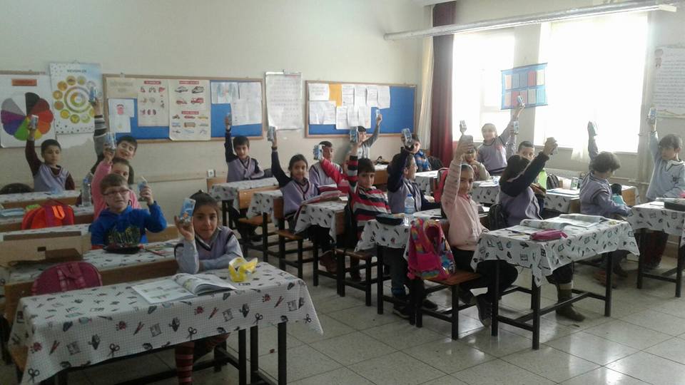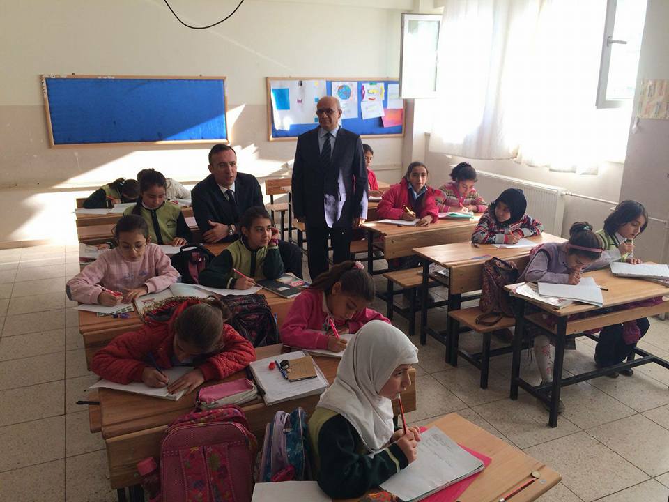 Kaymakam Koç ve beraberindekiler, daha sonra sınıfları gezerek öğrencilerle bir süre sohbet edip, süt dağıttı.