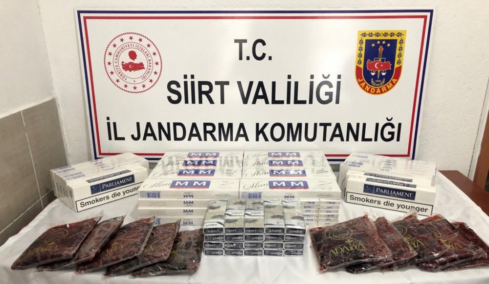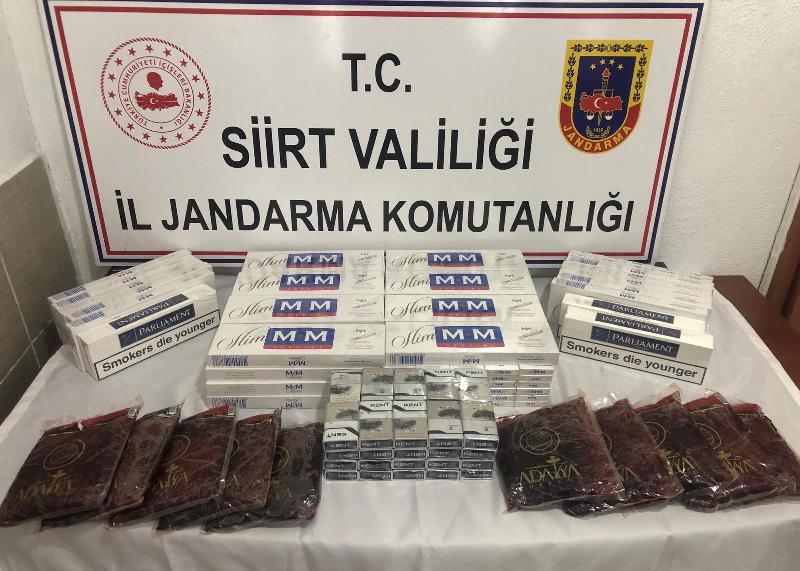 Siirt Valiliğinden yapılan yazılı açıklamada;Siirt l Jandarma Komutanlığı Kaçakçılık ve Organize Suçlarla Mücadele Şube Müdürlüğü ekiplerince; suç ve suçlularla etkin bir şekilde mücadele etmek ve her türlü suça konu malzemelerin ele geçirilmesi maksadıyla Eruh ilçesinde icra edilen yol emniyet ve kontrol faaliyeti kapsamında, Şırnak ilinden, Siirt iline gitmekte olan bir yolcu minibüsünde yapılan aramada; (510) Paket kaçak sigara ile (10) Kg. Kaçak Nargile Tütünü ele geçirilmiştir.