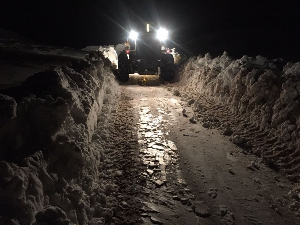 Yer yer 1,5 metre karın yağdığı kırsal alanda, Siirt İl Özel İdaresi yol ağında bulunan köy yollarının açılması için geceli-gündüzlü çalışmaları aralıksız sürüyor.