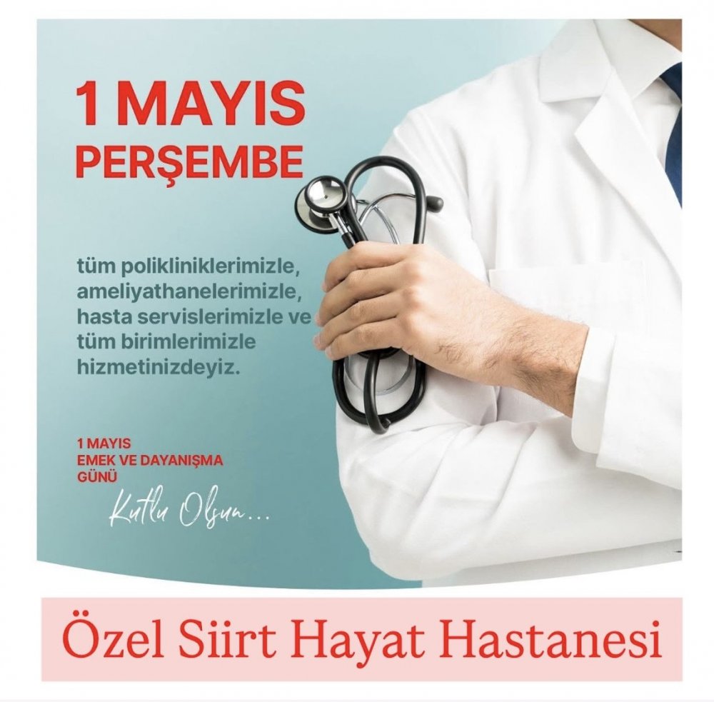 Özel Siirt Hayat Hastanesi, 1 Mayıs’ta da sağlık hizmetleriyle Siirtlilerin yanında olacak.