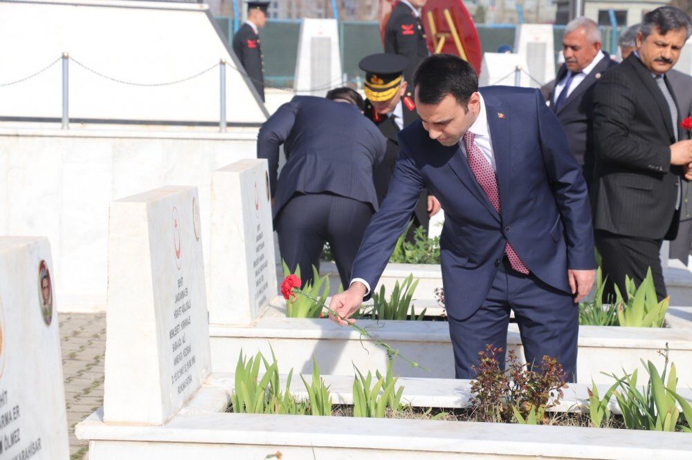 Vali Vekili Baytok ve diğer protokol üyeleri tarafından Şehit Mezarlarına karanfiller bırakıldı.