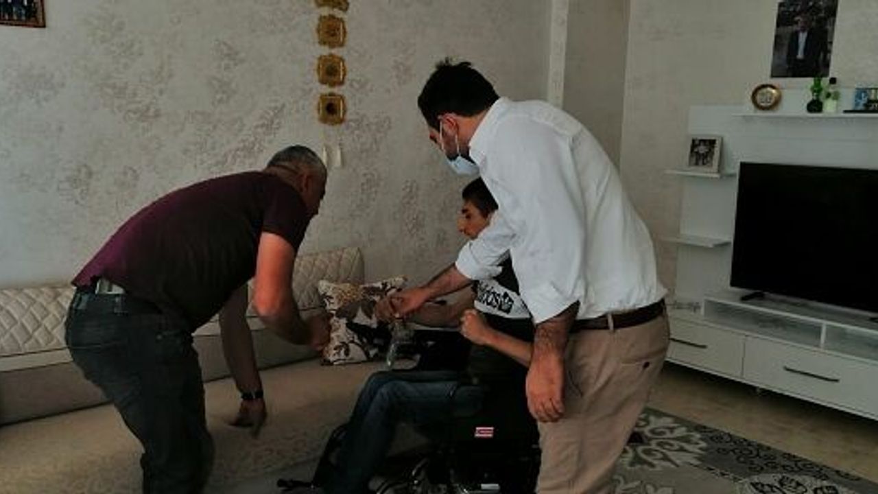 AK Parti İl Başkanı Av. Ekrem Olğaç, 16 yaşındaki engelli bir genci evinde ziyaret ederek, kendisine akülü tekerli sandalye hediye ederek, mutluluğuna ortak oldu.