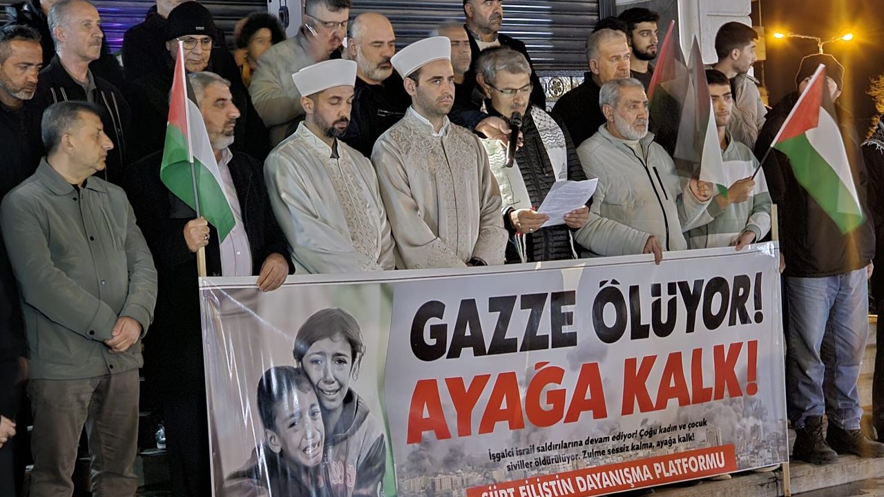 Siirt İHH, Peygamber Sevdalıları Derneği ve cami cemaatinin destekleriyle gerçekleştirilen açıklamada, Mescid-i Aksa’nın kapatılmasının kabul edilemez olduğu vurgulandı.