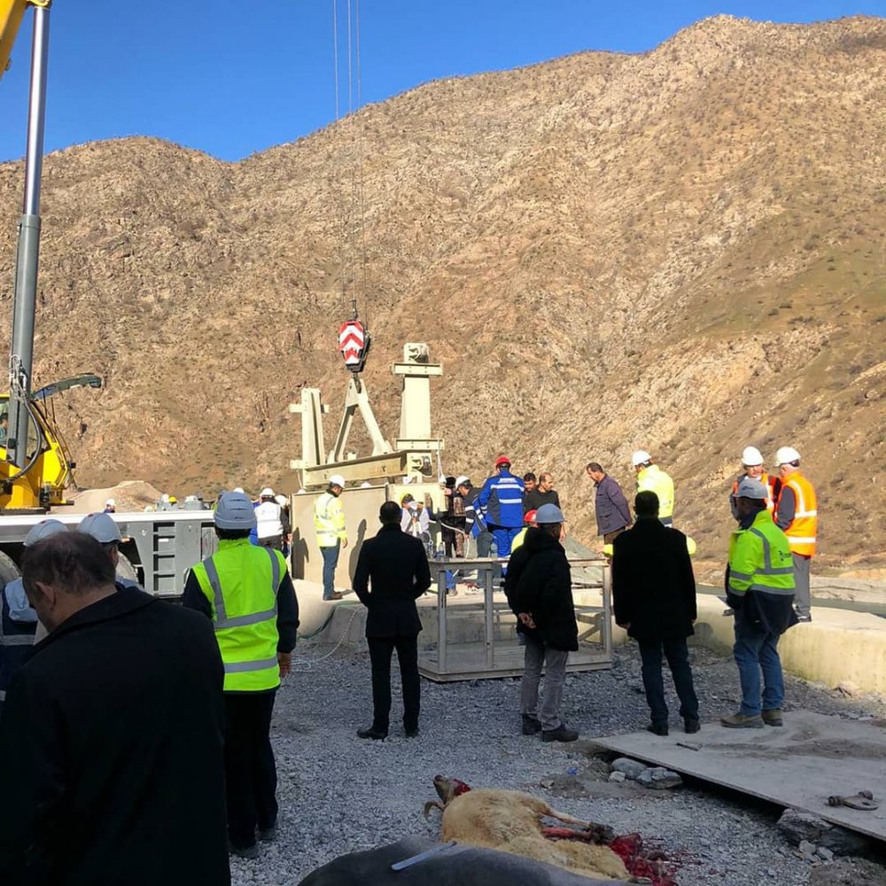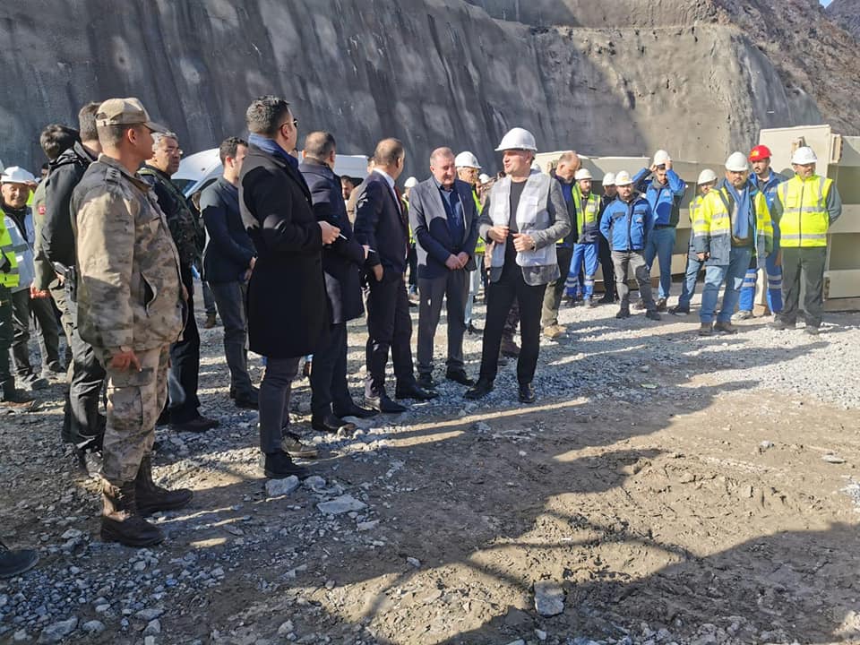 Pervari Kaymakamı Musa Aydemir,Şirvan Kaymakamı Memiş İnan,Pervari Belediye Başkanı Tayyar Özcan ve İl Genel Meclis Başakanı Cangir Bayram, Çetin Barajında su tutma programına katıldı.