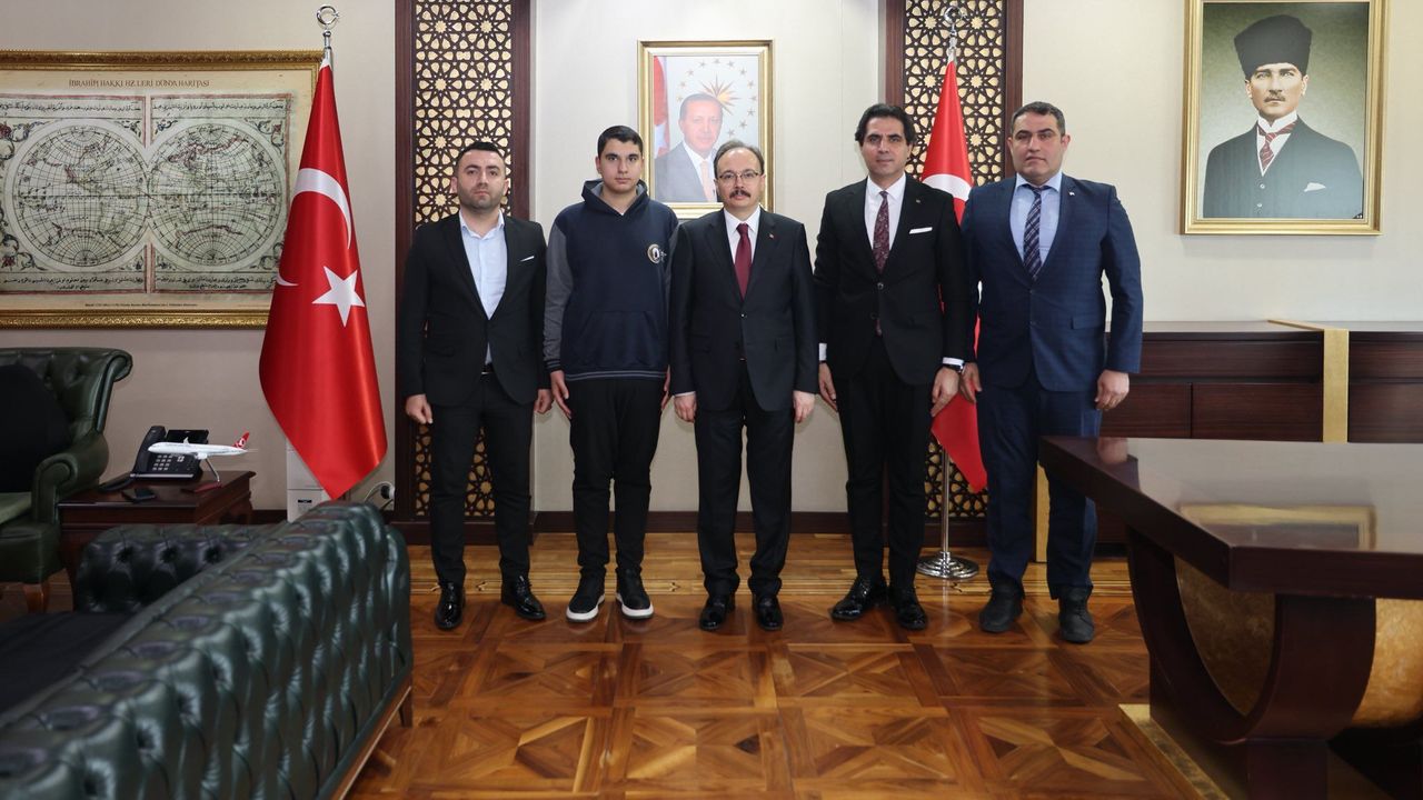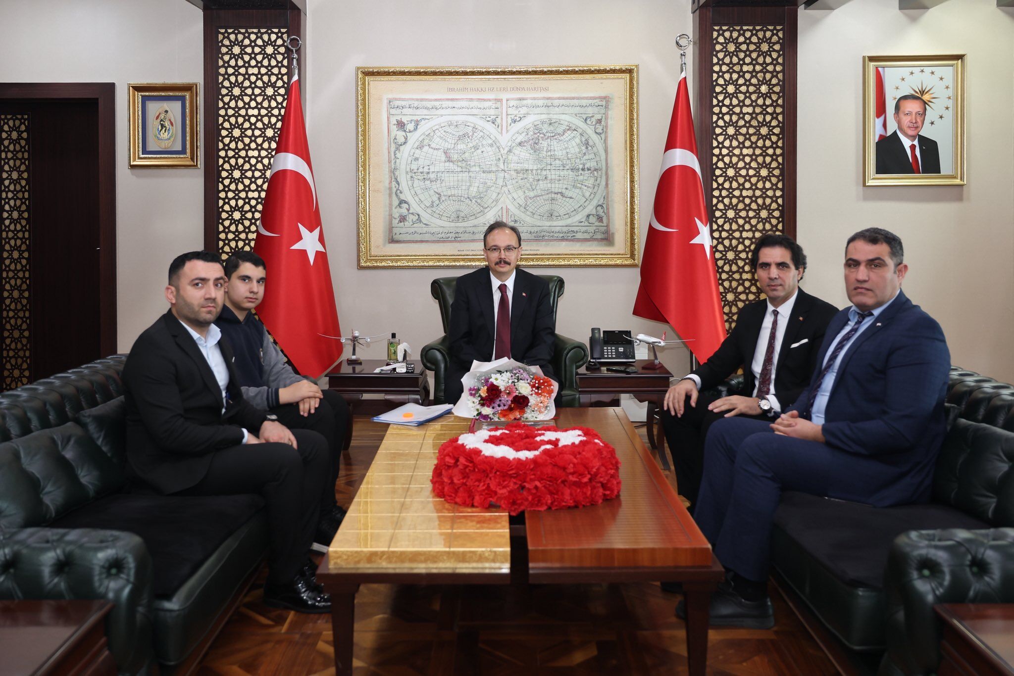 Siirt Valisi Dr. Kemal Kızılkaya, İl Millî Eğitim Müdürü İlhan Saz, Anadolu İmam Hatip Lisesi Müdürü Ramazan Aktay, Proje Danışmanı Öğretmen Erkan Demir ve proje geliştiricisi Siirt Anadolu İmam Hatip Lisesi Proje Okulu 10. sınıf öğrencisi Onur Çakır’ı makamında kabul etti.