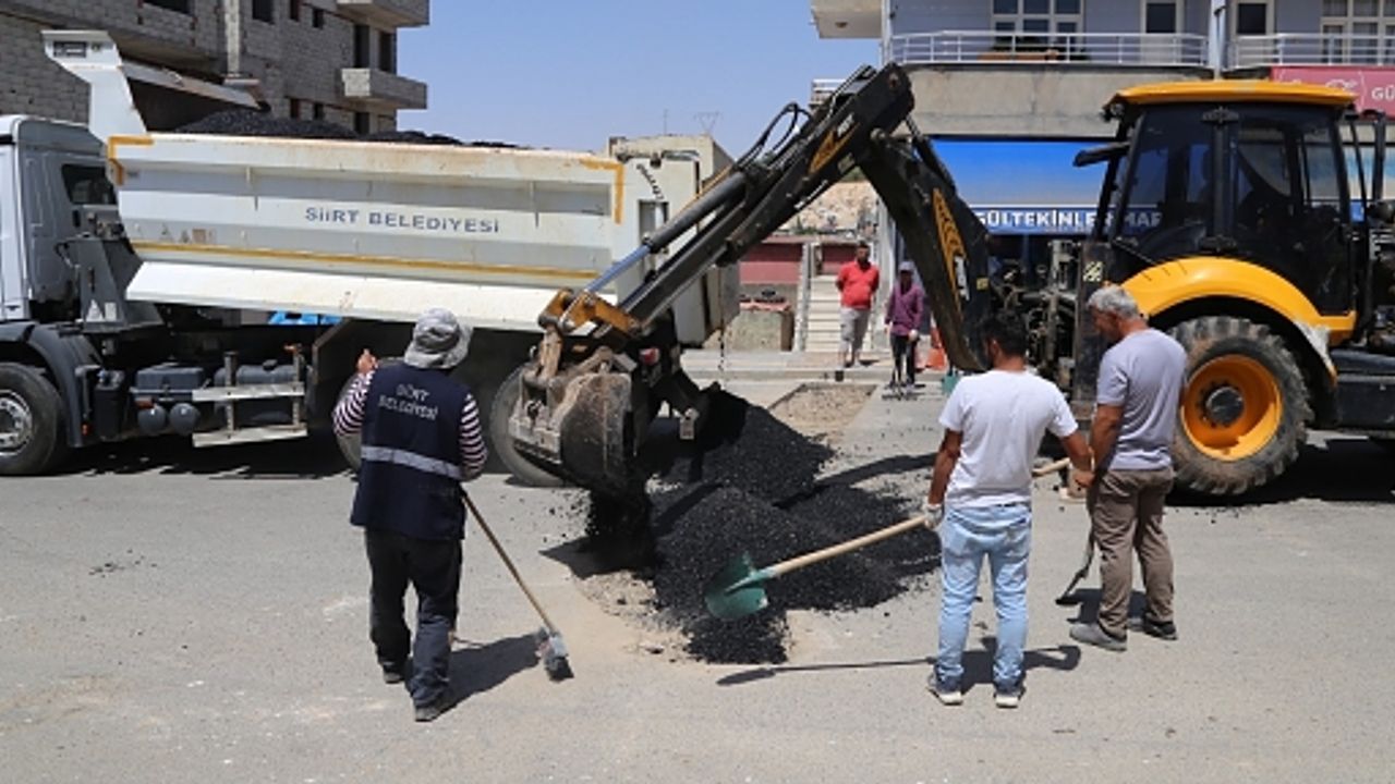 Siirt Belediyesi Fen İşleri Müdürlüğü ekipleri, şehrin çeşitli bölgelerinde deforme olmuş ve çukurlaşmış yolları onarma çalışmalarını sürdürüyor.