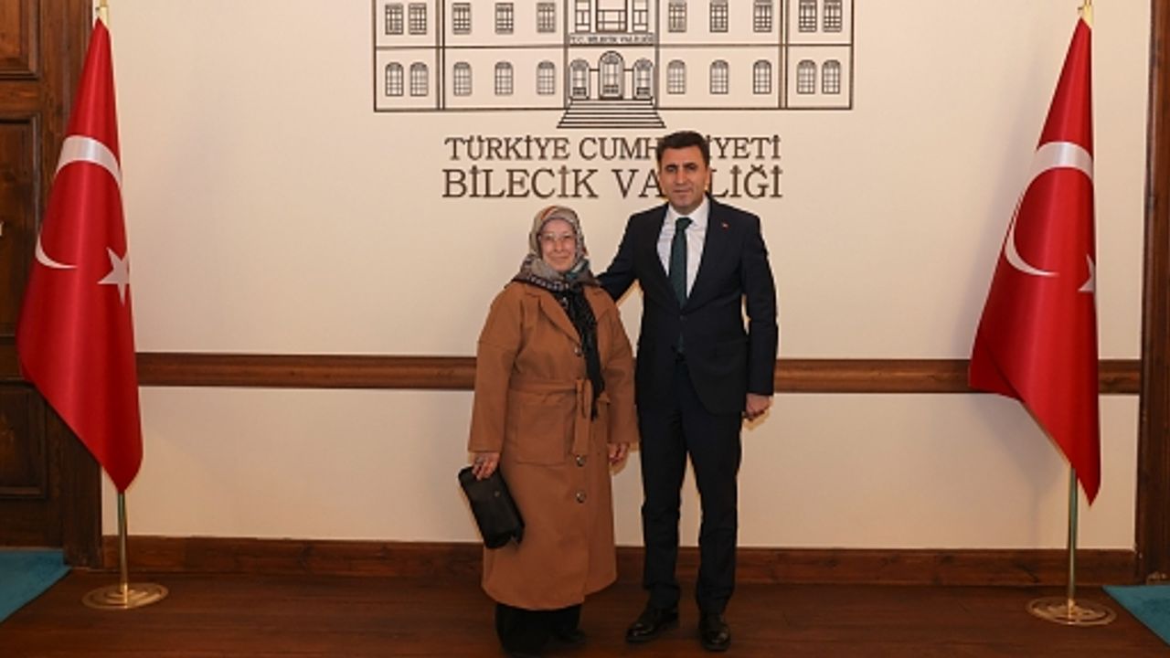 Bilecik Valisi Şefik Aygöl, el emeğiyle hazırladığı anlamlı ürünlerle toplumsal dayanışmaya katkı sunan Güler Kasım’ı makamında ağırlayarak, bu örnek davranışına destek verdi.