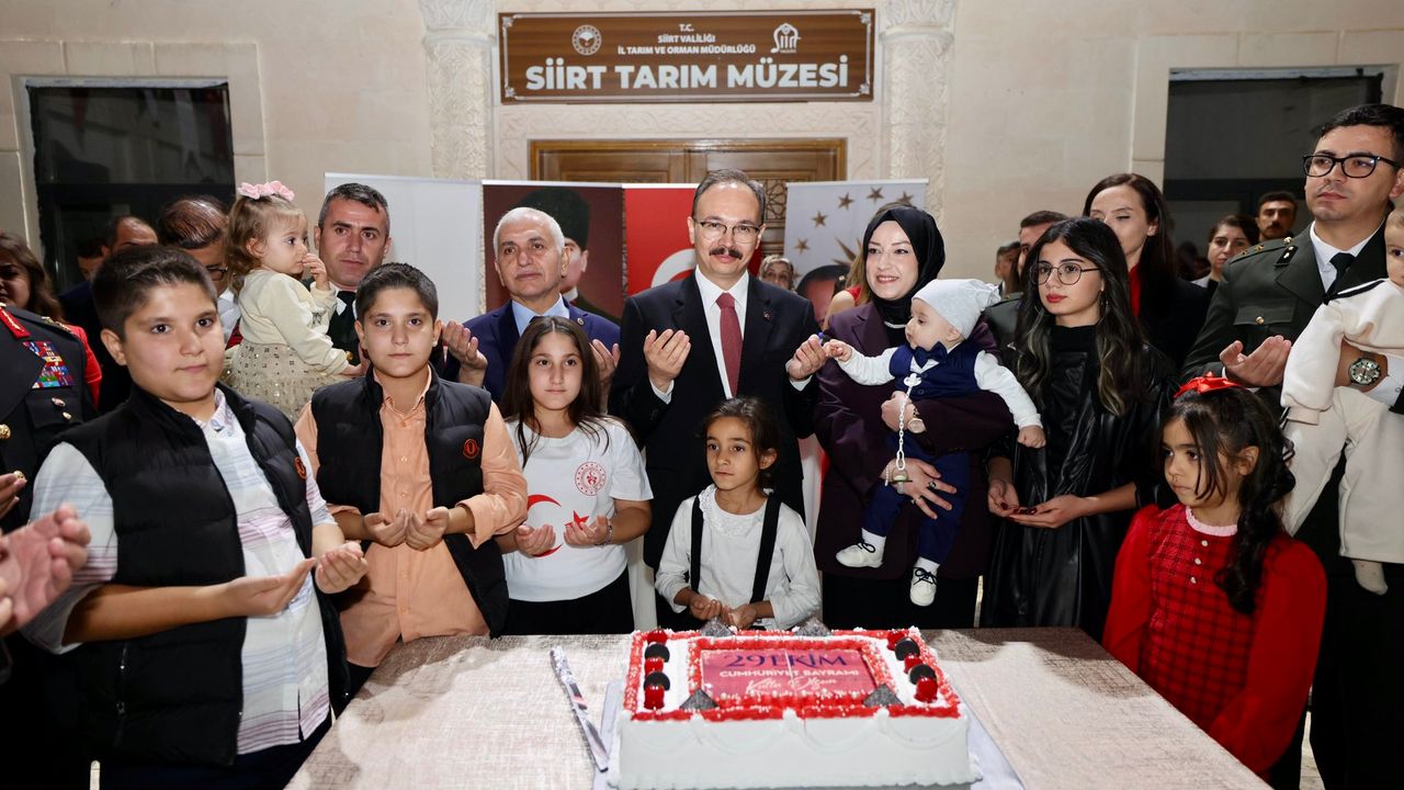 Programın sonunda, Vali Kızılkaya ve Hanımefendi Nurten Kızılkaya, çocuklarla birlikte Cumhuriyet pastasını keserek bu anlamlı günü hep birlikte kutladılar.