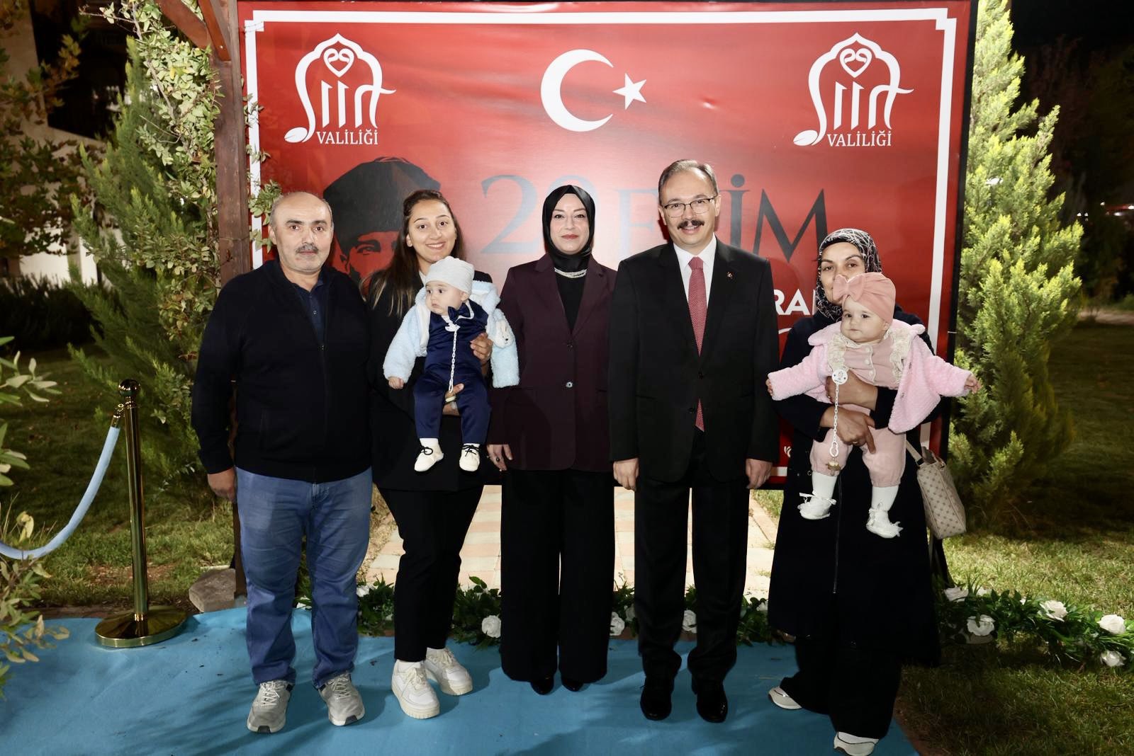 Cumhuriyetimizin ilanının 102. yılı kutlamaları kapsamında Siirt’te gerçekleştirilen kabul töreninde, Vali ve Belediye Başkan Vekili Dr. Kemal Kızılkaya ile Hanımefendi Nurten Kızılkaya, aziz şehitlerimizin kıymetli ailelerini, kahraman gazilerimizi ve davetlileri tek tek karşılayarak misafirlerle yakından ilgilendi.