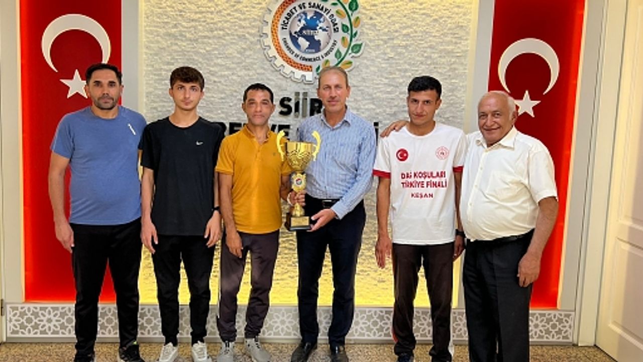 Türkiye Dağ koşuları şampiyonası ve İl karmalar arası Dağ koşuları lig yarışmalarında, 242 sporcunun katıldığı, 36 ilin mücadele ettiği yarışmalarda Türkiye 3’üncüsü olan sporcular Siirt Ticaret ve Sanayi Odası Başkan Vekili Fuat Özgür Çalapkulu’nu ziyaret etti.