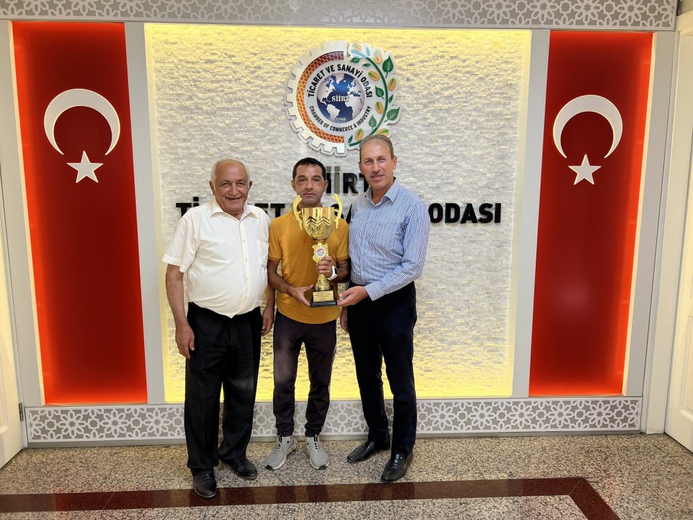 İl Karmaları Arası Dağ Koşuları Finalinde Siirt’i temsil ederek Türkiye 3’üncüsü olan sporcular Tuncay Şimşek, Muhammed Yılmaz, İsa Beştaş; Antrenör Aslan Çakmak ile birlikte Siirt Ticaret ve Sanayi Odası Başkan Vekili Fuat Özgür Çalapkulu’nu ziyaret ettiler.