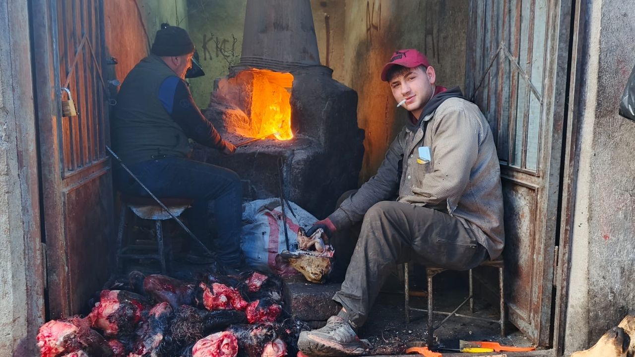 Vatandaşlar, kestikleri keçilerin kellelerini demirci ustalarına götürerek kızgın demir basma yöntemiyle temizletiyor.