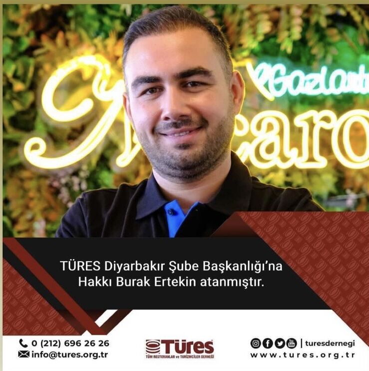 Tüm Restoranlar ve Turizmciler Derneği (TÜRES) Diyarbakır Şubesi başkanlığına hemşehrimiz Burak Ertekin getirildi.
