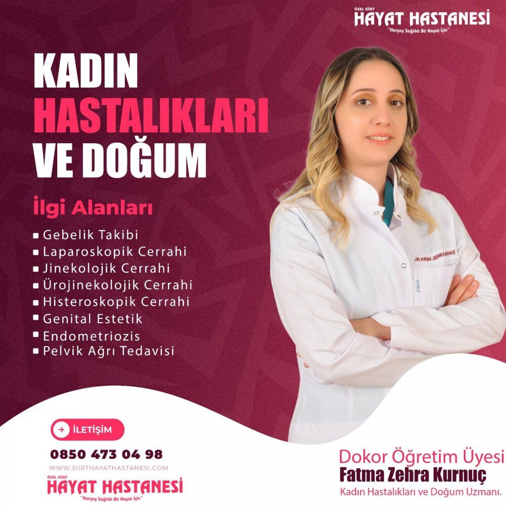 Siirt Eğitim ve Araştırma Hastanesinin Başarılı Kadın Hastalıkları ve Doğum Uzmanı Dr.Öğr. Üyesi Fatma Zehra KURNUÇ Özel Siirt Hayat Hastanesinde hasta kabulüne başladı.