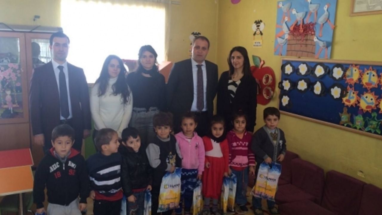 Başkan Özcan ve beraberindeki heyet ile birlikte okulda incelemeler yaparak okul öğrencilerine kırtasiye ve kitap yardımı yaptı.