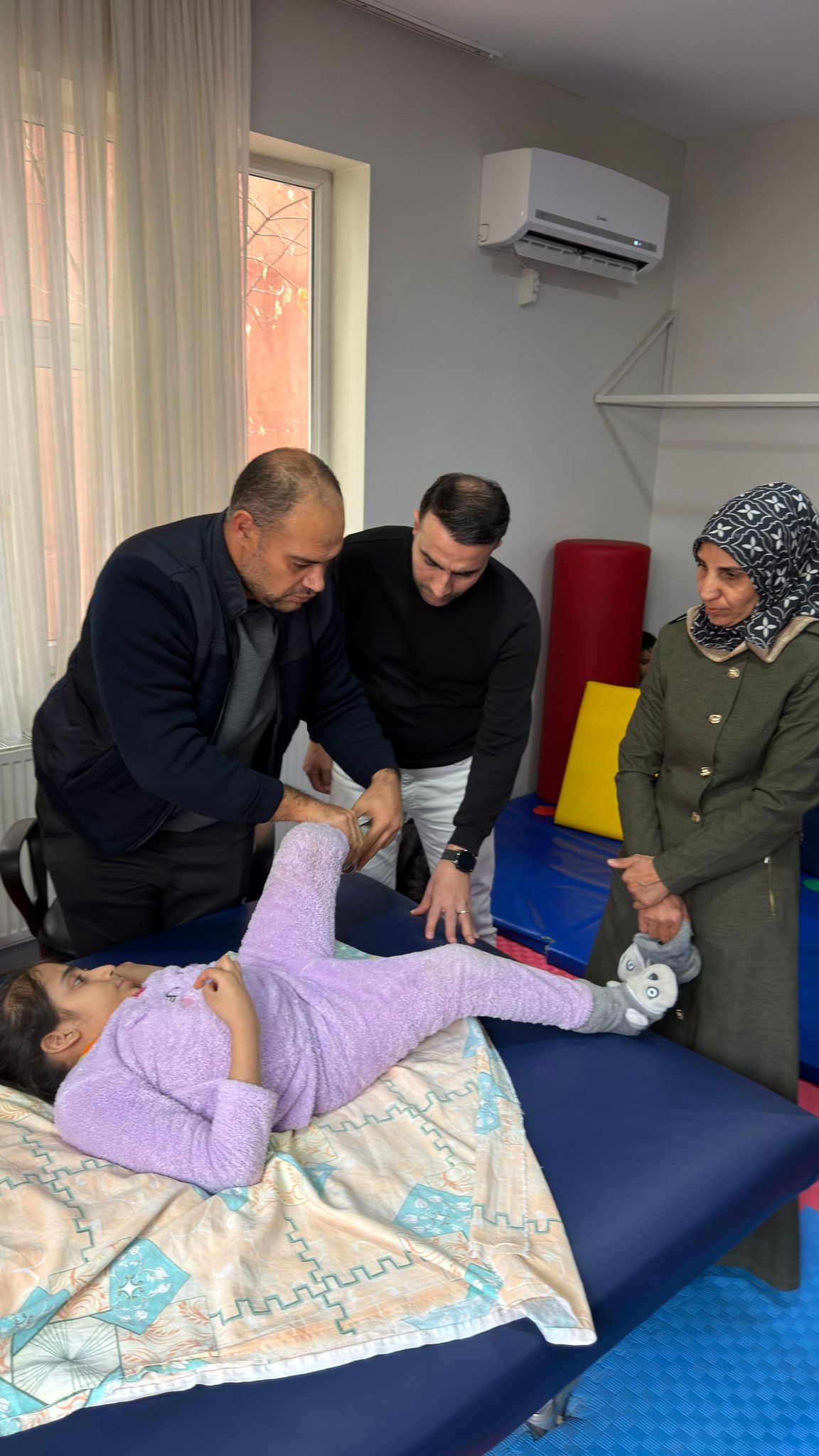 Ziyarette, hastane ve rehabilitasyon merkezi ortak bir çalışma yürüterek tüm engelli öğrencilerin ortopedik değerlendirmeden geçirilmesini sağladı. Çocuk ortopedisi alanında başarılı operasyonlara imza atan Op. Dr. İbrahim Halil Cebe, merkezdeki öğrencileri detaylı şekilde muayene etti.