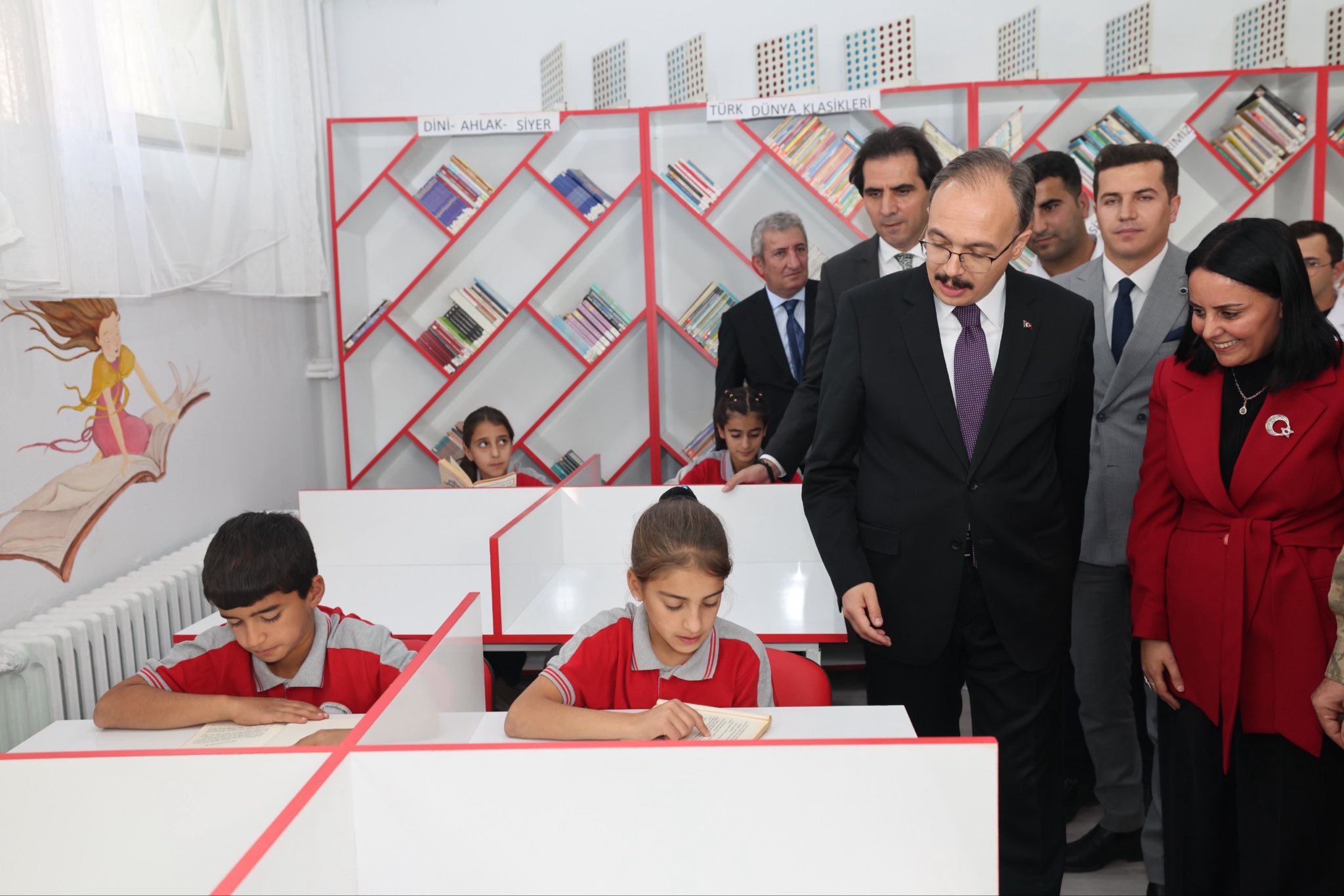 Program sonunda Vali Kızılkaya ve beraberindekiler, öğrencilerle bir süre sohbet ederek kütüphaneyi gezdi.