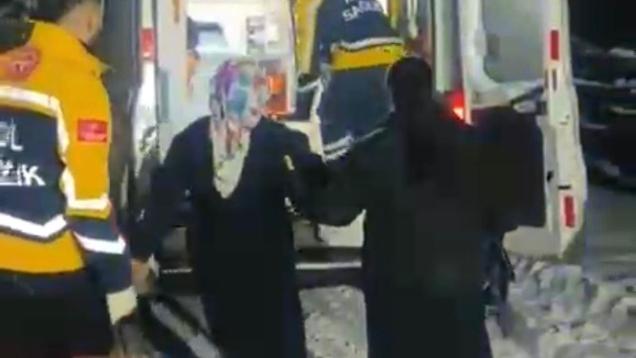 Karla kaplı yolda yaklaşık 2 saat süren çalışmaların ardından Fatma Elçiçek, 112 Acil Servis ekiplerine teslim edildi.
