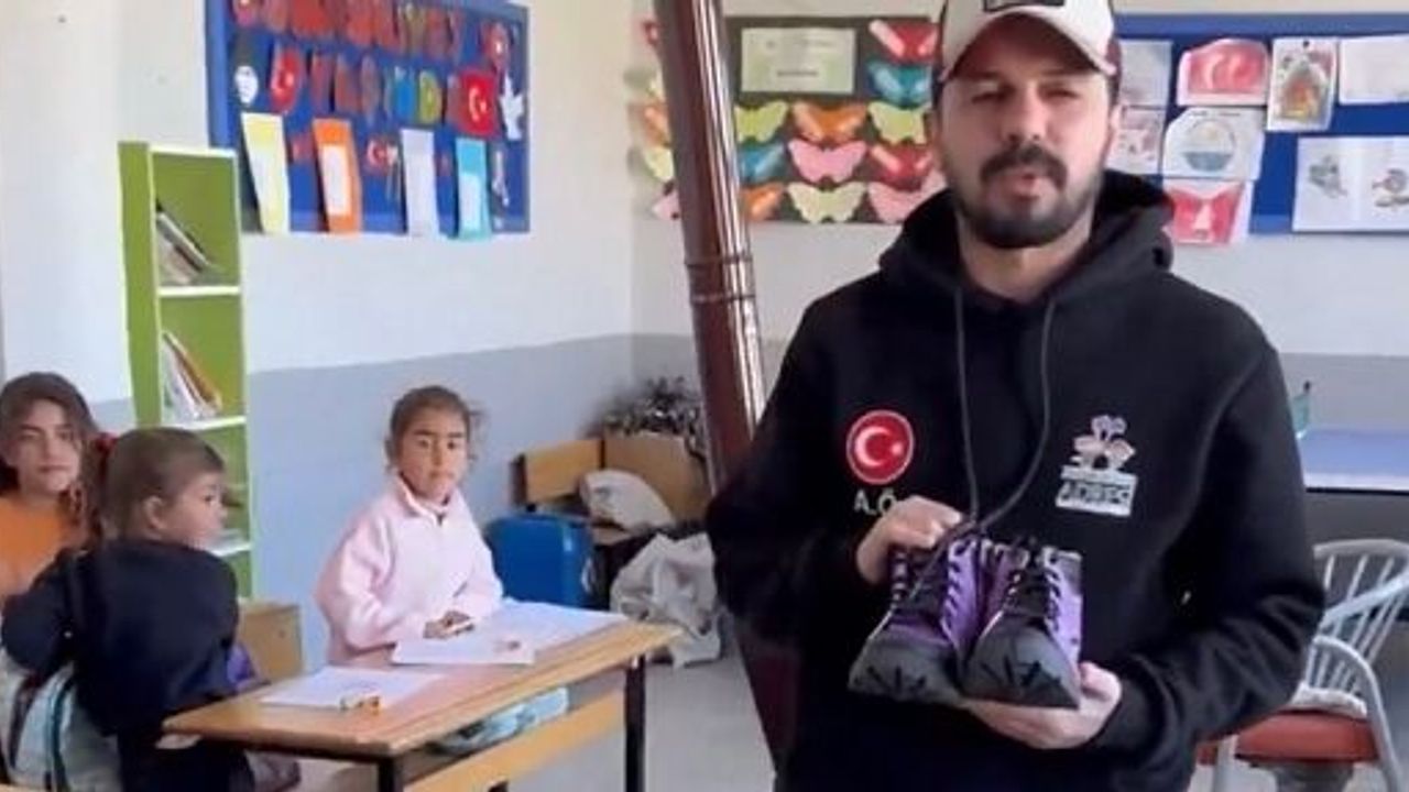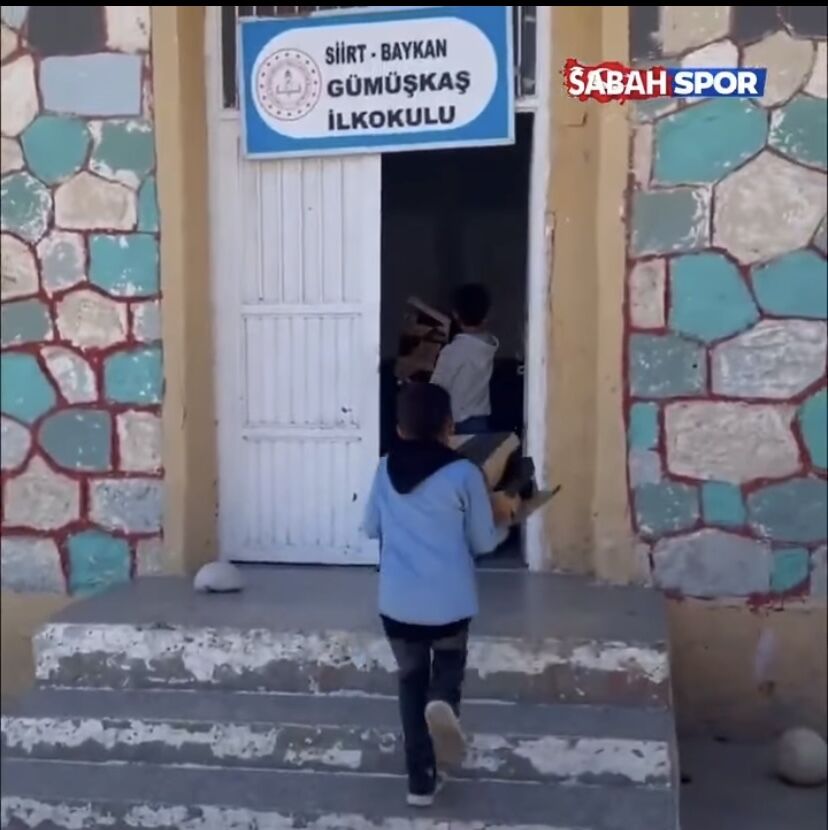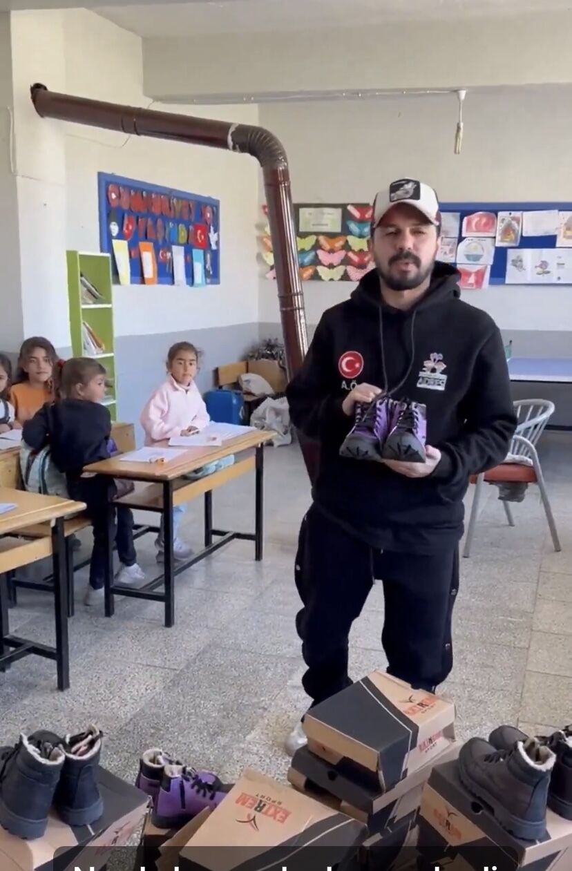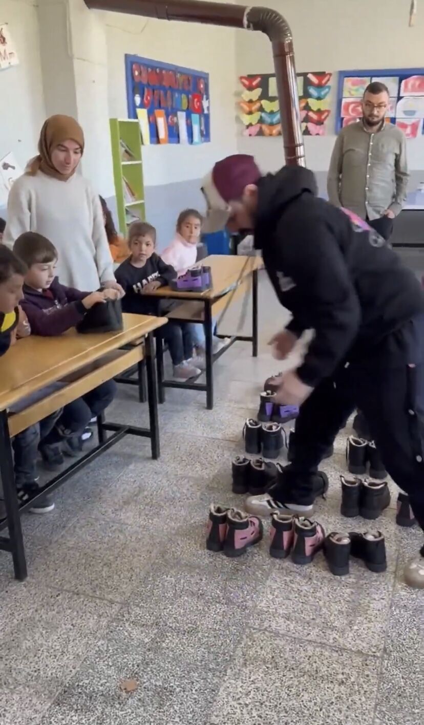 Yılmaz, Siirt’in Baykan ilçesine bağlı Gümüşkaş İlkokulu’ndaki öğrencilere mont ve bot yardımında bulundu.