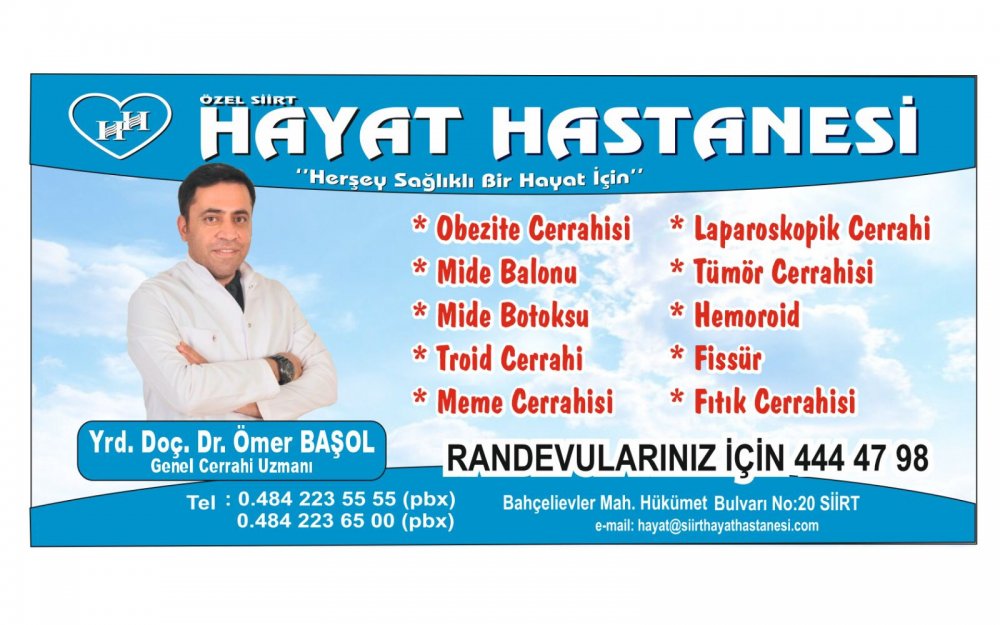 Daha önce Diyarbakır Dicle Üniversitesi Tıp Fakültesinde görev yaparken ilimizin ilk özel hastanesi olan Özel Siirt Hayat Hastanesiyle anlaşmaya varan Genel Cerrahi Uzmanı Yrd. Doç. Dr. Ömer Başol, ilimizde daha önce yapılmayan ameliyatları özel Siirt Hayat Hastanesinde yapmaya başladı.