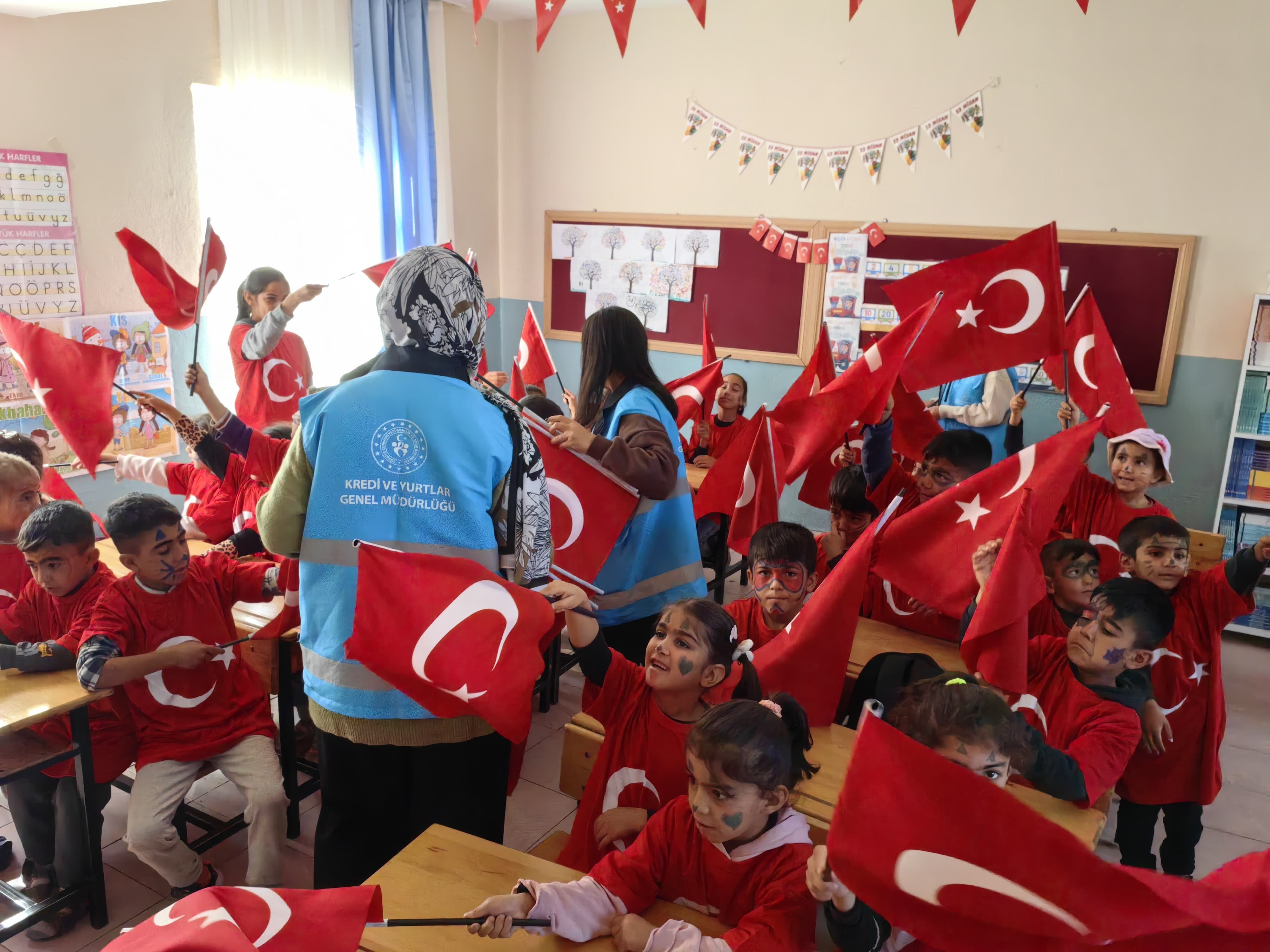 Etkinlik kapsamında KYK öğrencileri, miniklerle birlikte oyunlar oynayıp bayraklar dağıtarak Cumhuriyet sevincini paylaştı. Okul bahçesinde düzenlenen kutlama programında öğrenciler tarafından hazırlanan şiirler, gösteriler ve marşlar renkli görüntülere sahne oldu.