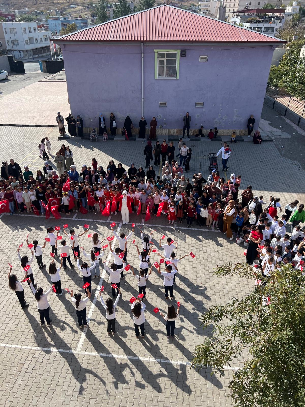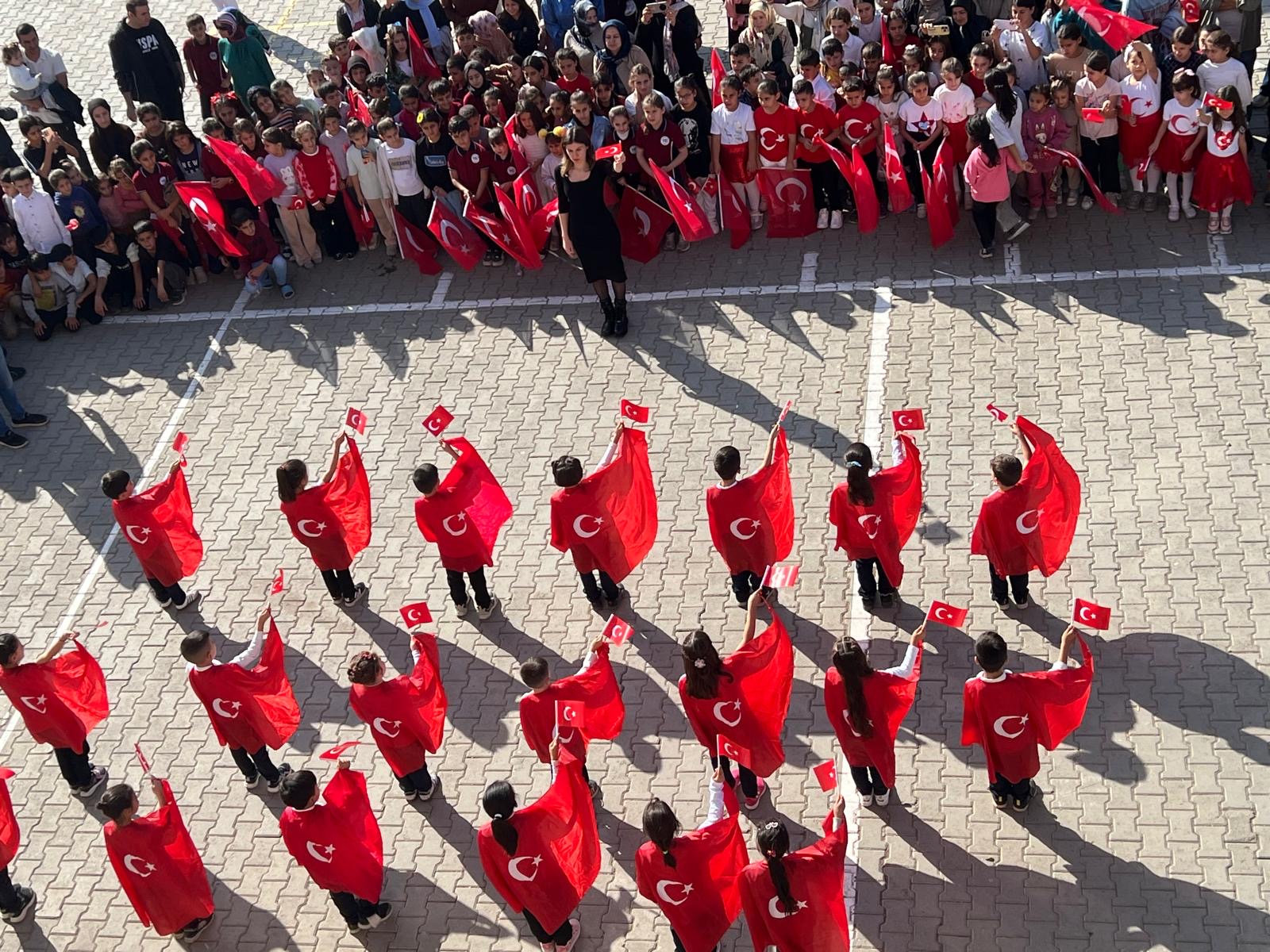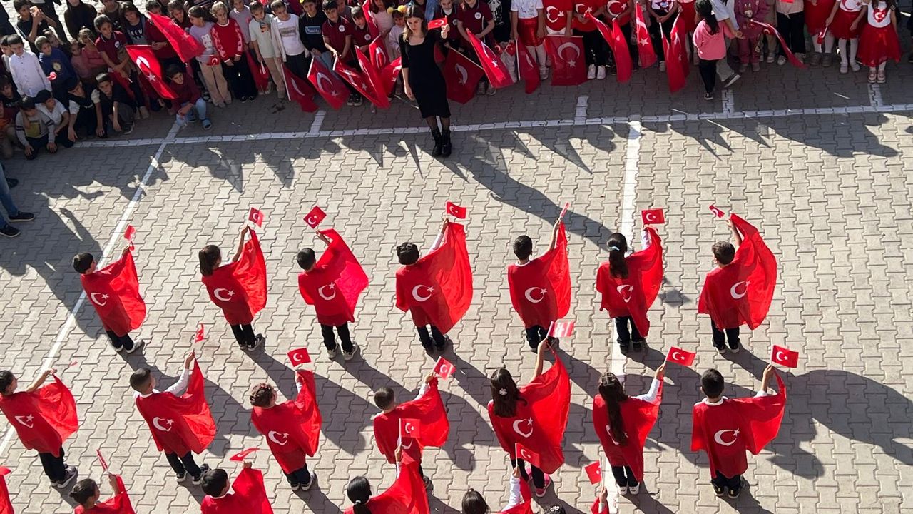 Türk bayraklarıyla süslenen okulda, Cumhuriyetin kazanımları bir kez daha gururla hatırlandı.