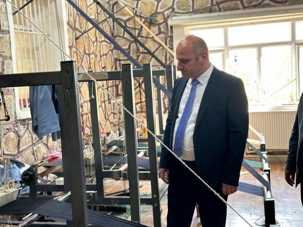 Geleneksel dokuma yöntemleriyle üretilen Şal Şepik kumaşından ürünlerin yapıldığı önemli bir merkez olan atölyede Sayın Sadoğlu, yapılan çalışmaları yakından inceleyerek, yöresel el sanatlarının ve kültürel mirasın korunmasına verilen önemi vurguladı.