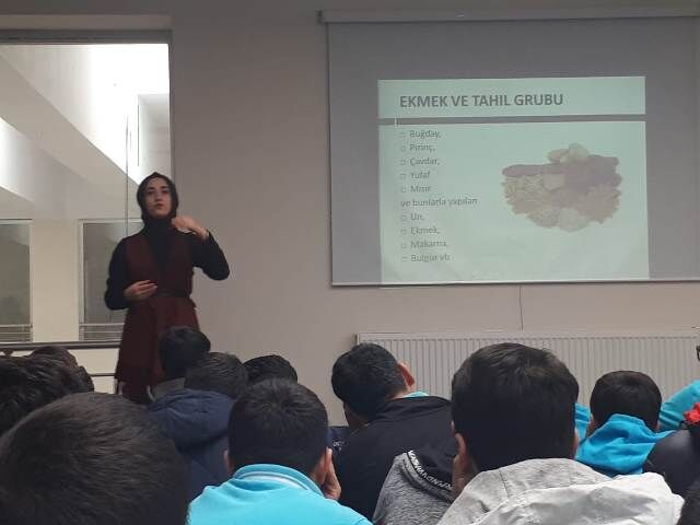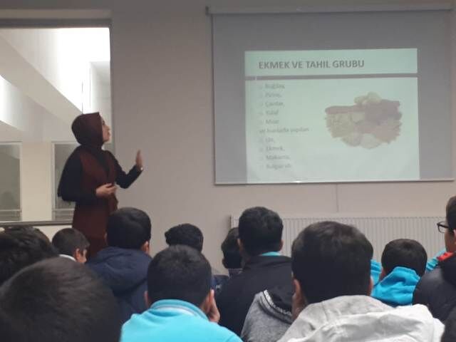 Programda öğrencilere yönelik bir seminer veren Diyetisyen Merve Kumak ise çocukların okul çağında nasıl beslenmesi gerektiği konusunda bilgi vererek şöyle devam konuştu:"İnsanın sağlıklı bir bedene sahip olması ve sağlıklı yaşaması için beslenme temel etkenlerden bir tanesidir.