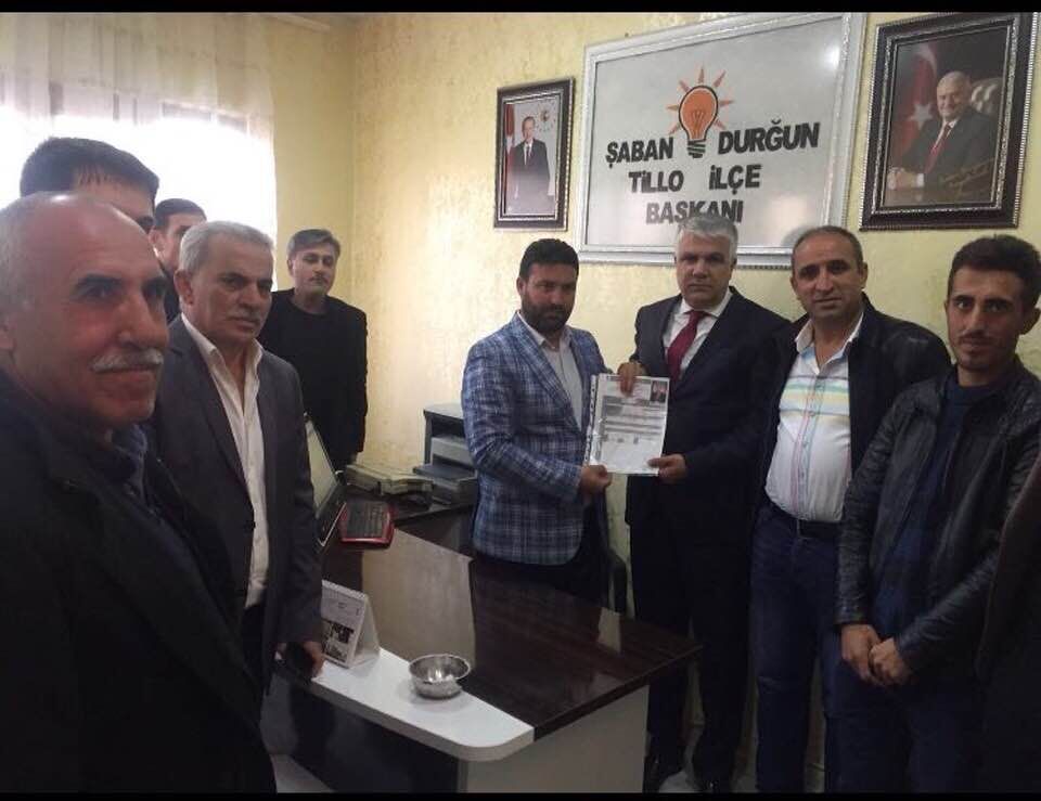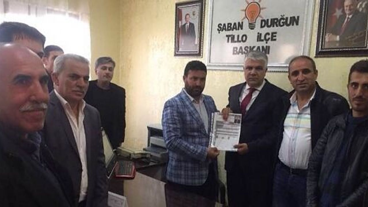 AK Parti İlçe Başkanlığı'na başvurusunu yapan Çalapoğlu, "Babama ve dedeme yakışır bir şekilde Tillo ilçesine hizmet etmek için bu yola çıktık. Ben de atalarımın siyasi hayatında önemli bir yer tutan ve maneviyatı büyük ilçemiz Tillo'da var olmak istedim" dedi.