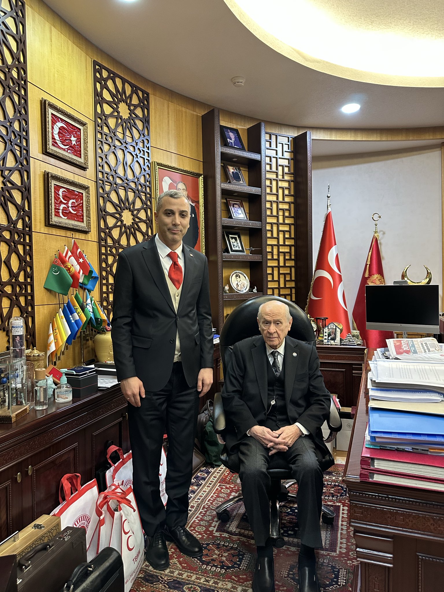 Tükenmez paylaşımında, “Bilge Liderimiz, Sayın Genel Başkanımız Dr. Devlet Bahçeli beyefendiyi ziyaret edip emir ve talimatlarını aldık.