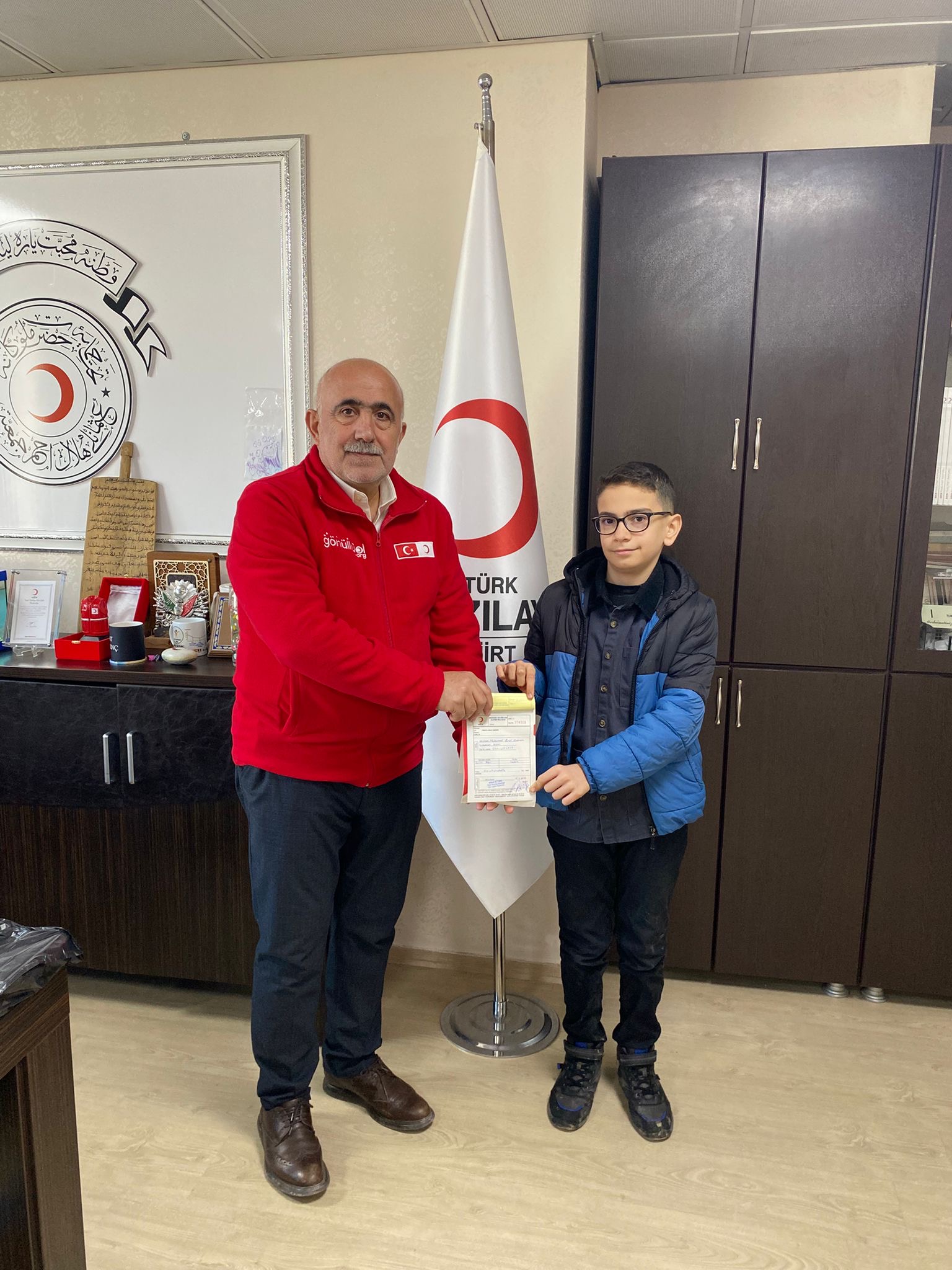 Muhammed Berat Zeybekoğlu, biriktirdiği 1.638 TL tutarındaki bağışı, Türk Kızılayı Siirt İl Başkanlığına teslim etti.