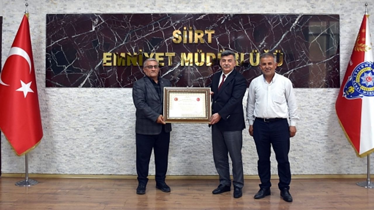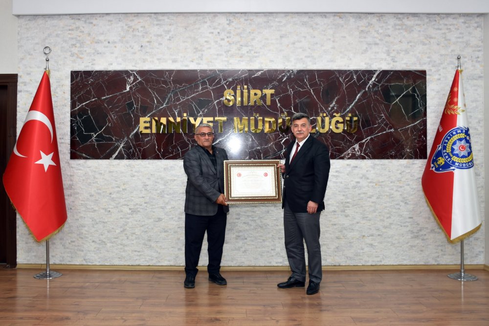 Türkiye Gaziler ve Şehit Aileleri Vakfı Siirt İl Başkanı Nedim Ayhan, vatanımızın ebedi kahramanları olan şehitlerimizi ve gazilerimizin kahramanlıklarını hiçbir zaman unutmayan Siirt İl Emniyet Müdürlüğüne teşekkür amacıyla anlamlı bir ziyaret gerçekleştirdi.