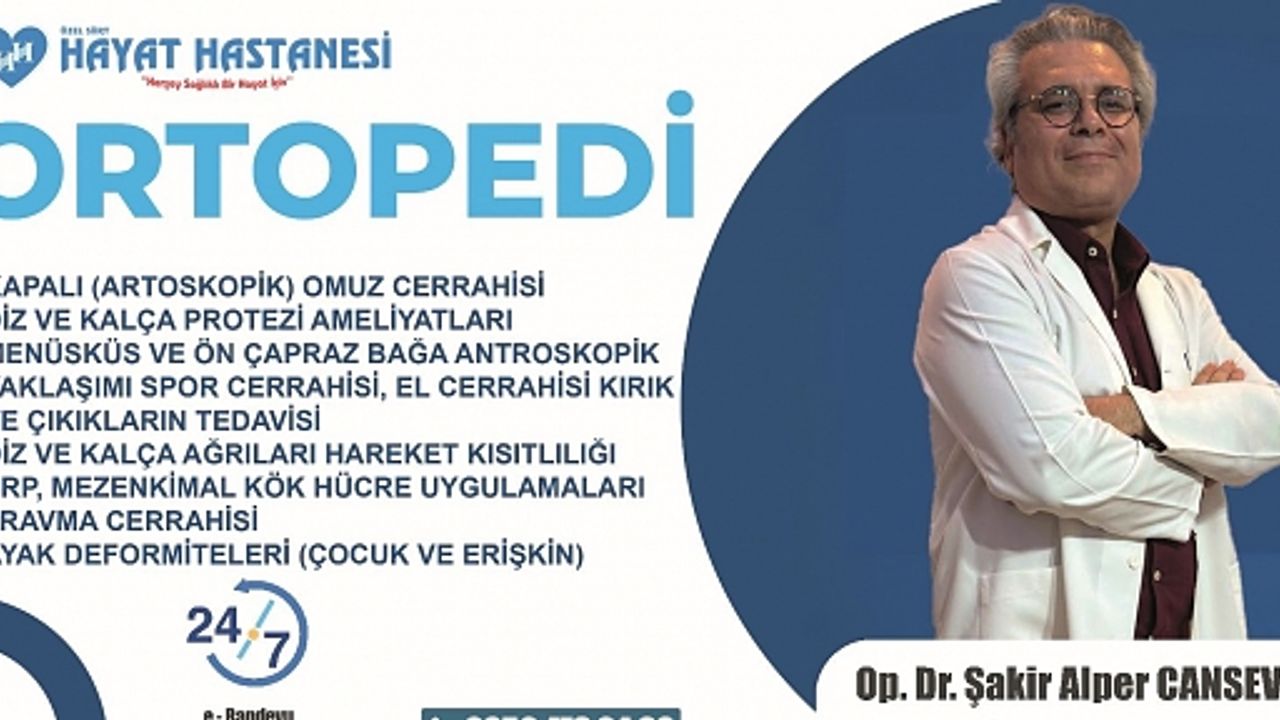 Ortopedi ve Travmatoloji Uzmanı Op. Dr. Şakir Alper Cansever, Özel Siirt Hayat Hastanesi’nde yarından itibaren hasta kabülüne başlıyor.