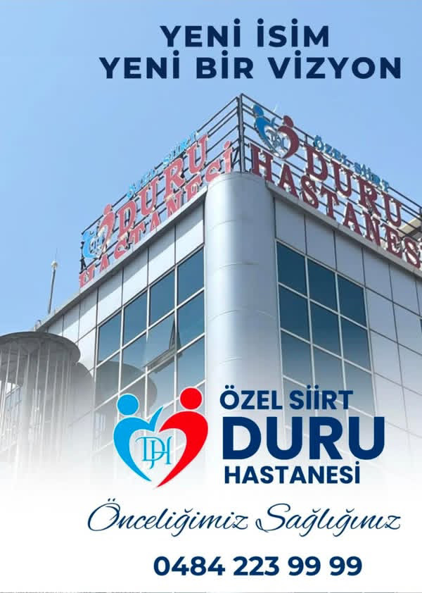 Siirt halkına nitelikli sağlık hizmeti sunmayı hedefleyen Özel Siirt Duru Hastanesi, gelişmiş tıbbi cihazları, geniş branş yelpazesi ve hasta odaklı hizmet anlayışıyla kısa sürede bölgenin önemli sağlık merkezlerinden biri olmayı hedefliyor.