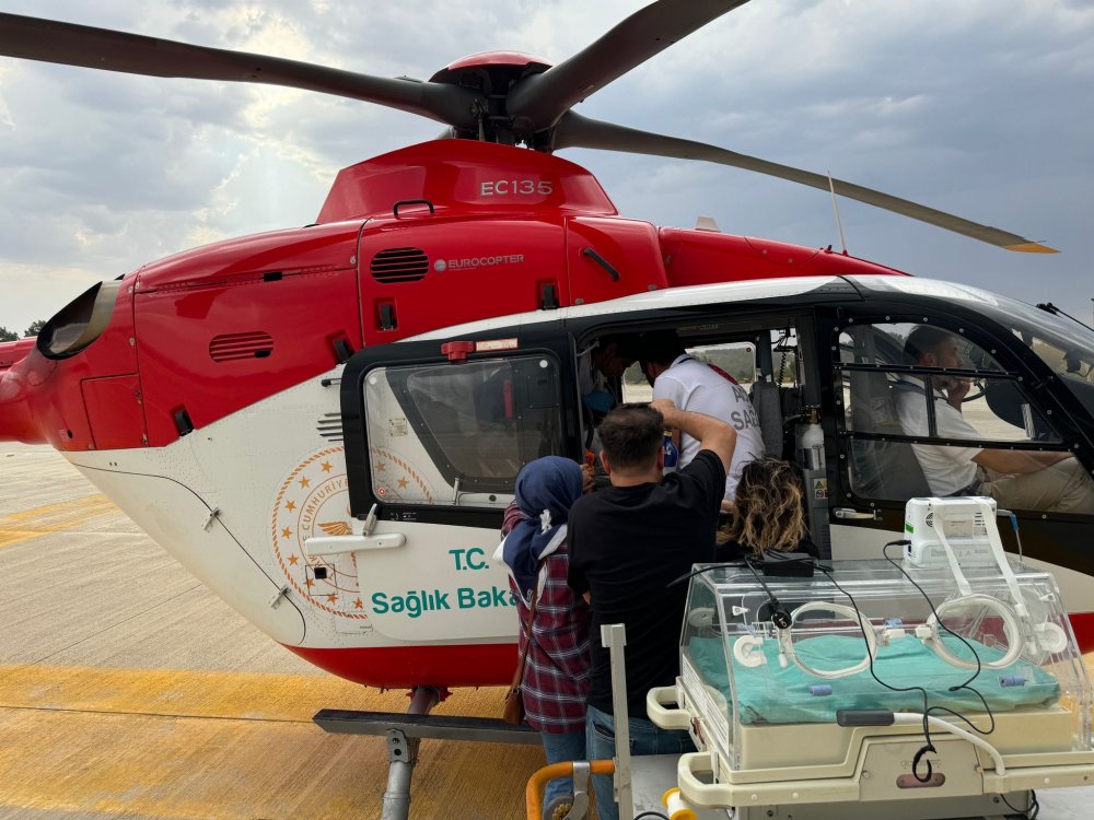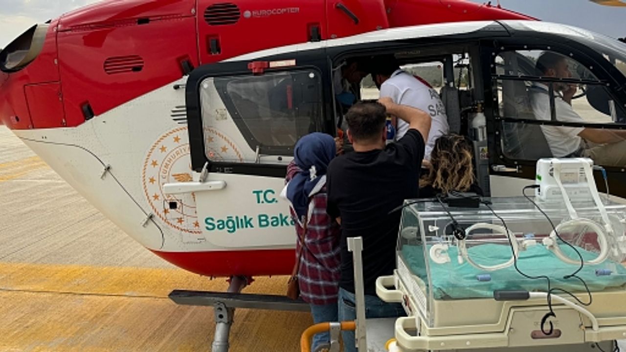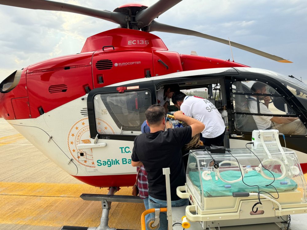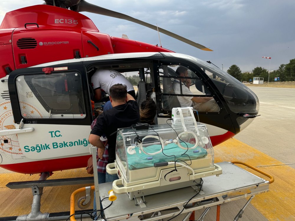 Daha sonra erken doğum ile doğan ve solunum yetmezliği olan 27 haftalık ikiz bebekler Özel Siirt Hayat Hastanesi Çocuk Sağlığı ve Hastalıkları Uzmanı. Dr. Abdulhakim Güneş tarafından Sağlık Bakanlığına ait ambulans helikopterle Van iline sevk edildiler.