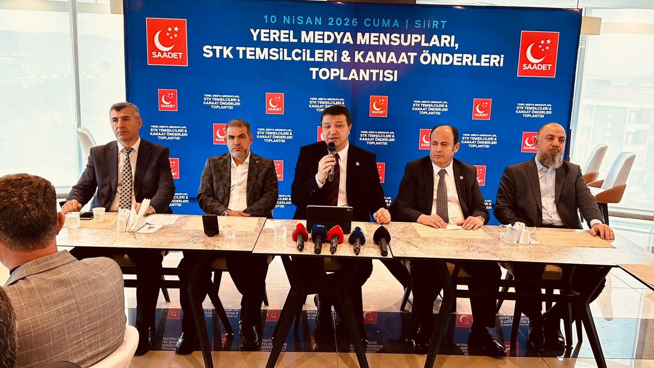 Doğu ve Güneydoğu Anadolu ziyaretleri kapsamında Siir’e gelen Saadet Partisi Genel Başkanı Mahmut Arıkan, beraberindeki Genel Başkan Yardımcısı İbrahim Yıldız ve parti yöneticileriyle kentteki bir otelde sivil toplum kuruluşu (STK) temsilcileri ve gazetecilerle bir araya geldi.