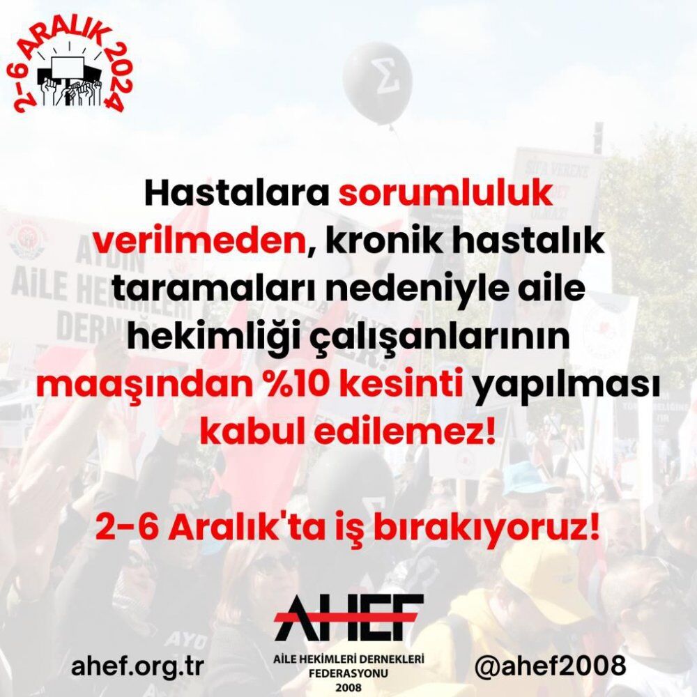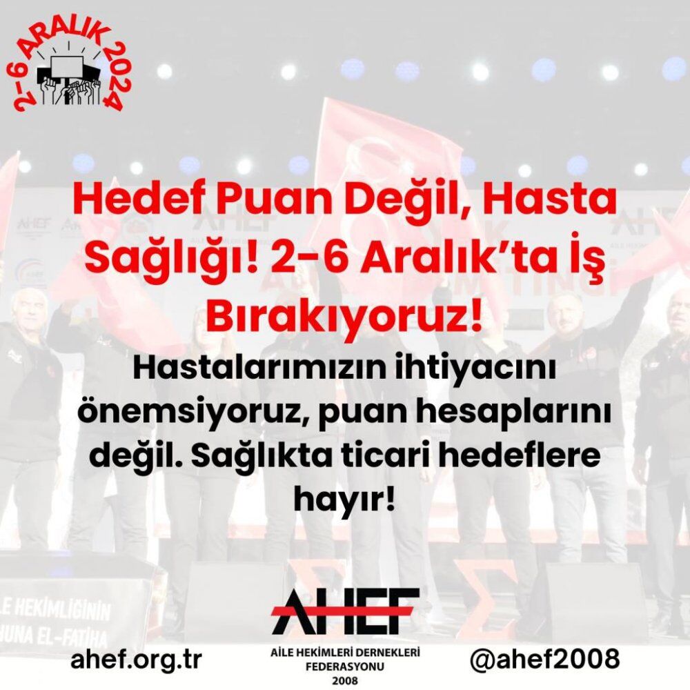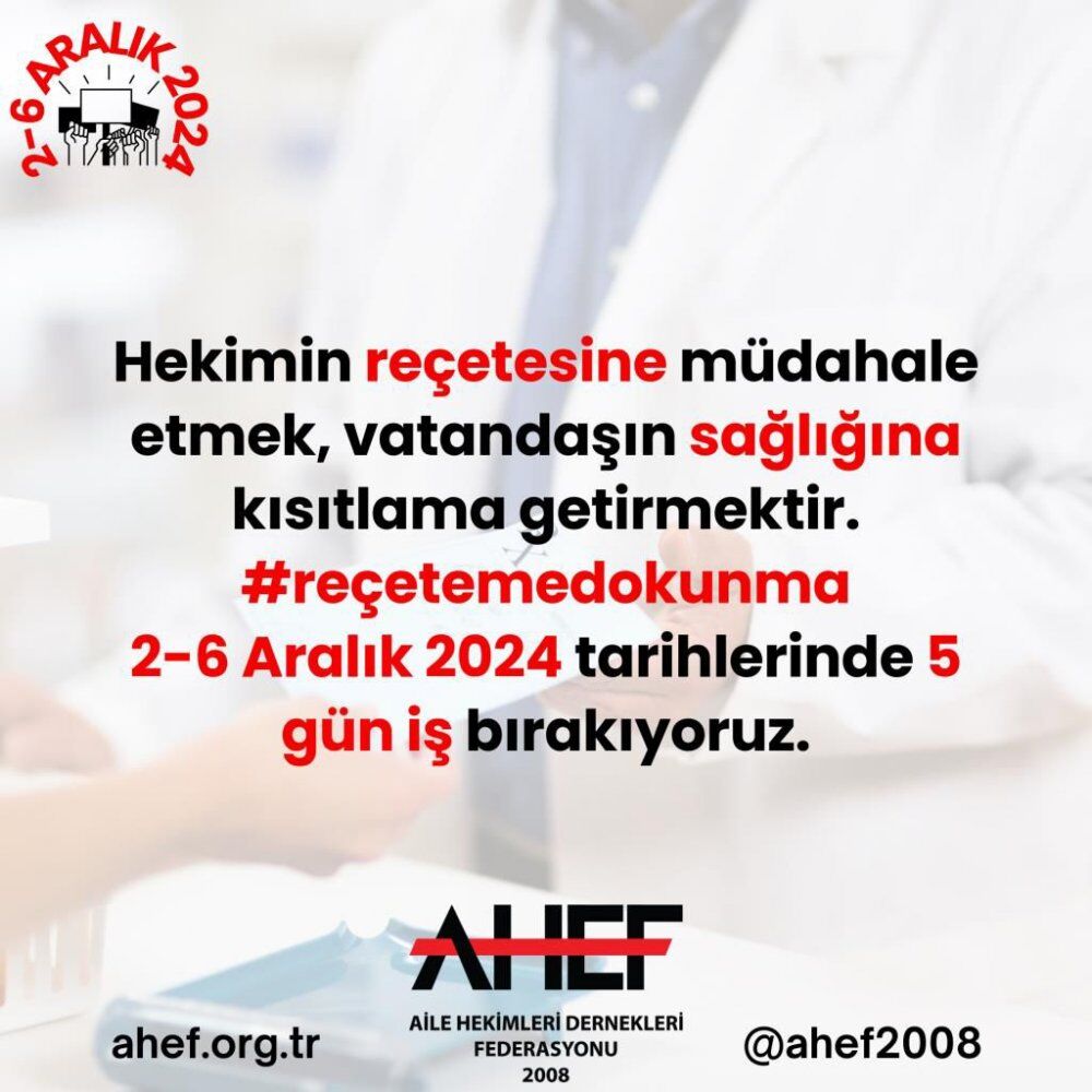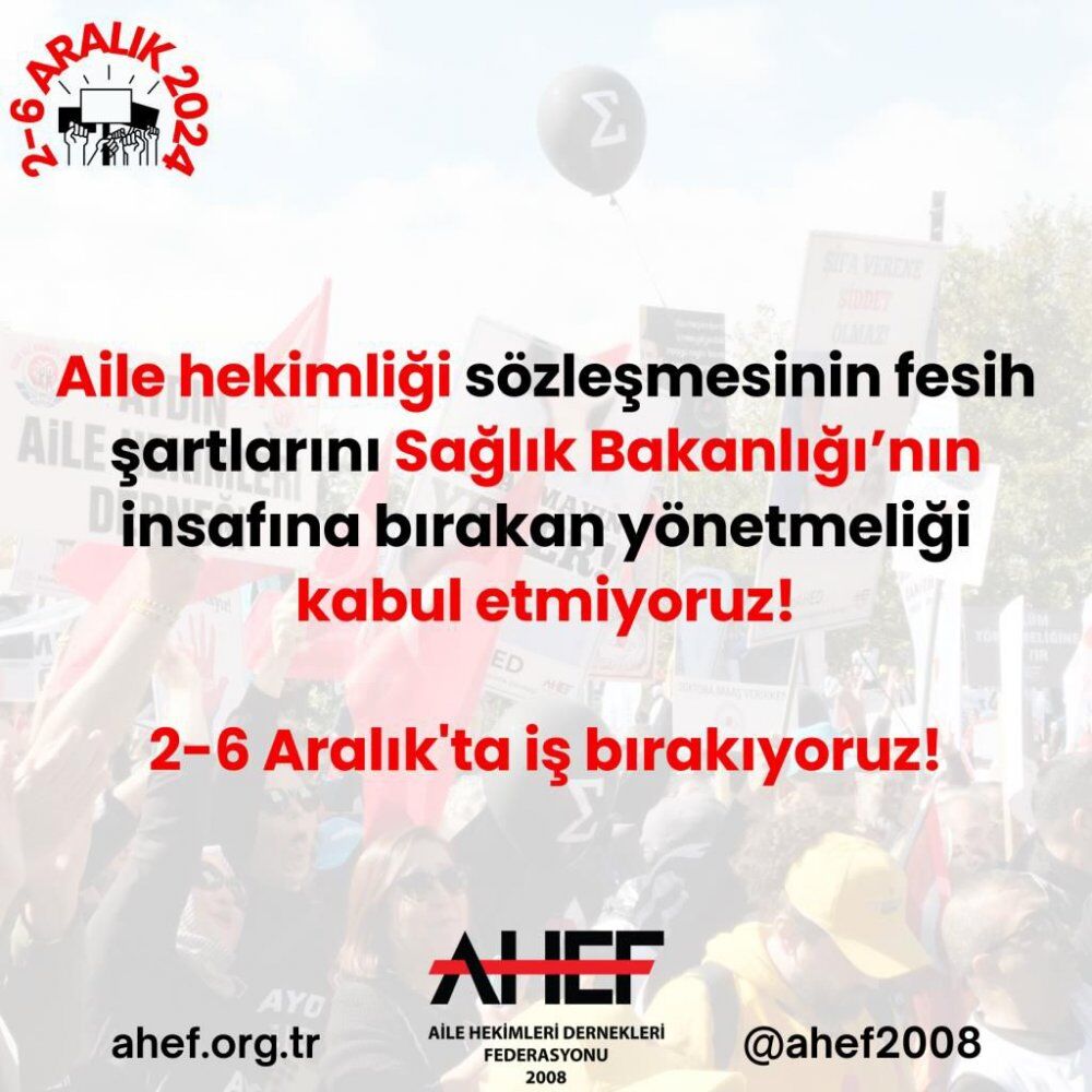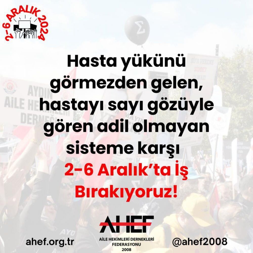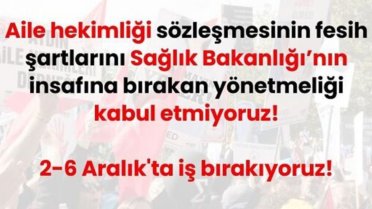 Kasım ayında Türkiye genelinde 3 gün süresince iş bırakma eylemi gerçekleştiren aile hekimliği çalışanları, 2-6 Aralık tarihlerinde 5 gün daha iş bırakacaklarını açıkladı.