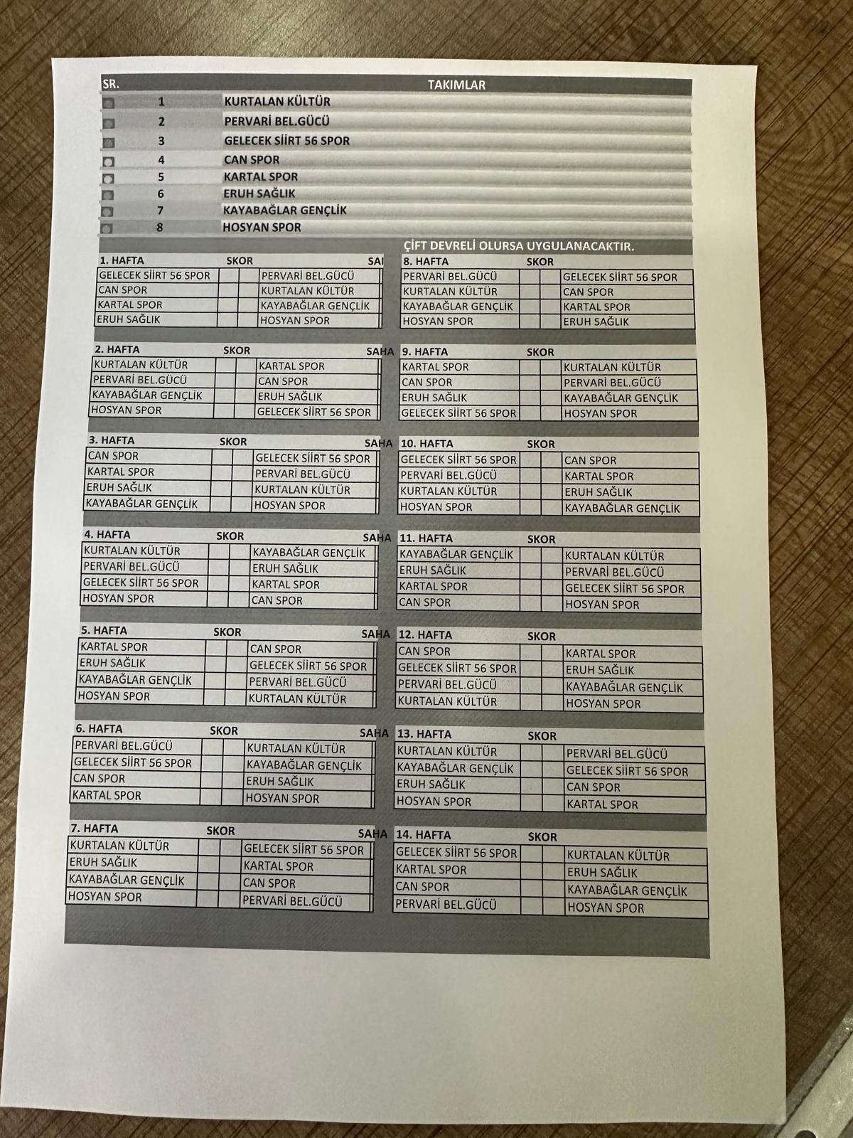 Siirt 1. Amatör Küme maçlarının Kasım ayının son haftasında başlayacağı bildirildi.