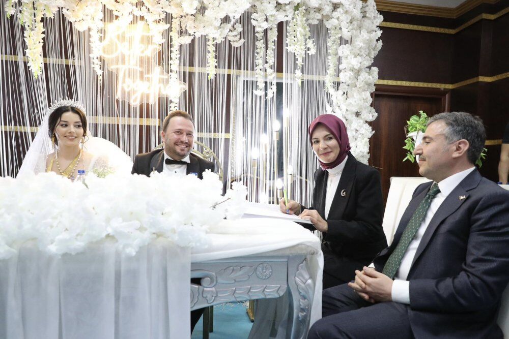 Bakan Göktaş, “Nikahına bizi davet etmesinden dolayı, tabii ki öncelikle bir vazifemiz, mutlu olduk. Zor gününde yanında olan devlet, mutlu gününde de elbette yanında olacaktı. Bizler için şereftir. Devletimiz her daim yanınızda” dedi.