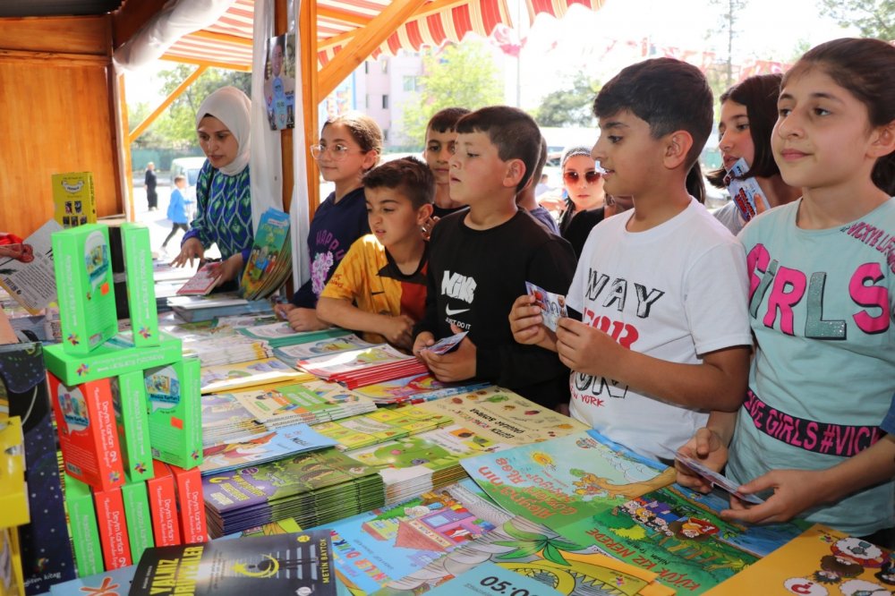 Kitap fuarında öğrencilere ve çocuklara hediye çeki dağıtılarak, kitapla buluşmaları sağlandı.