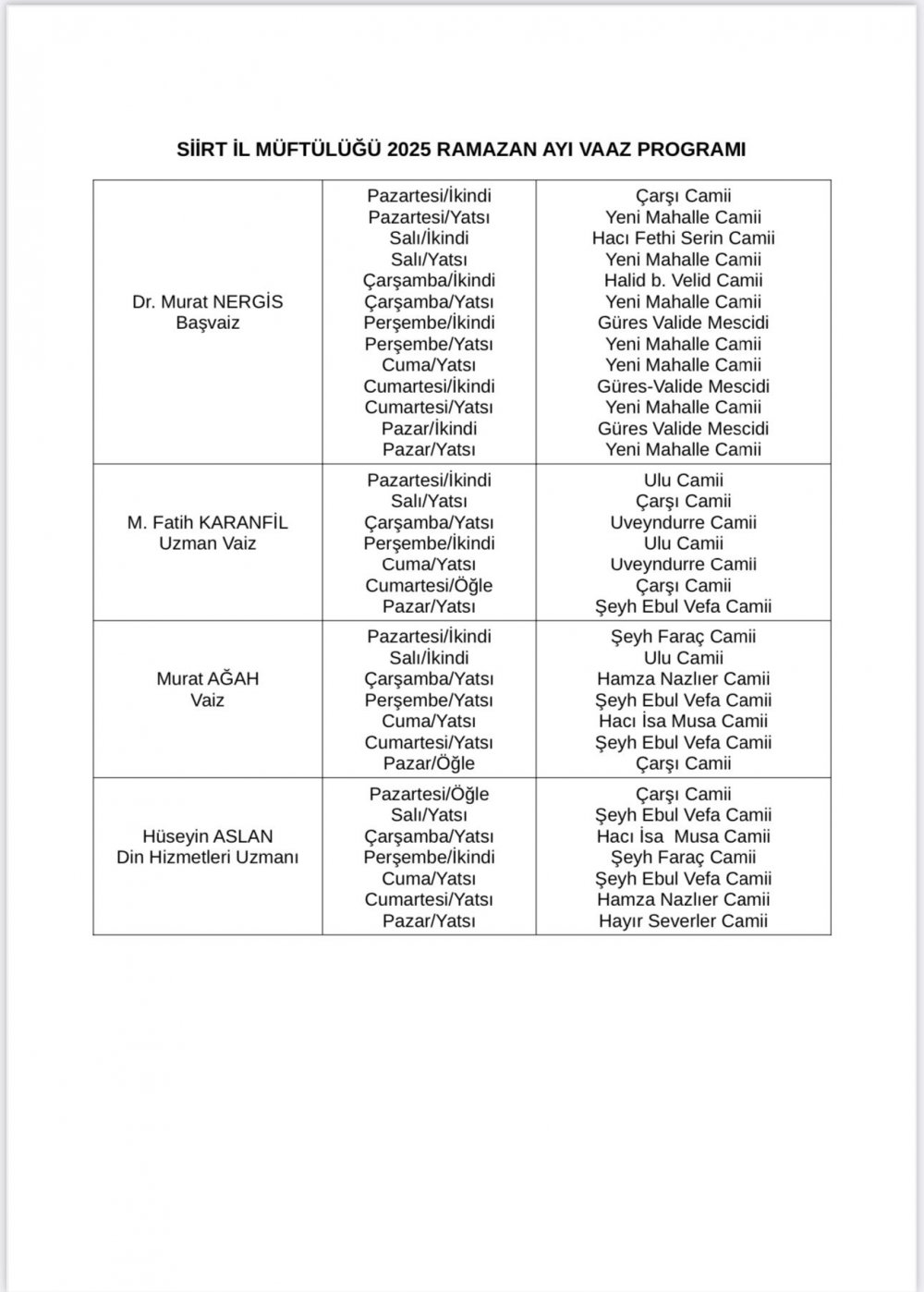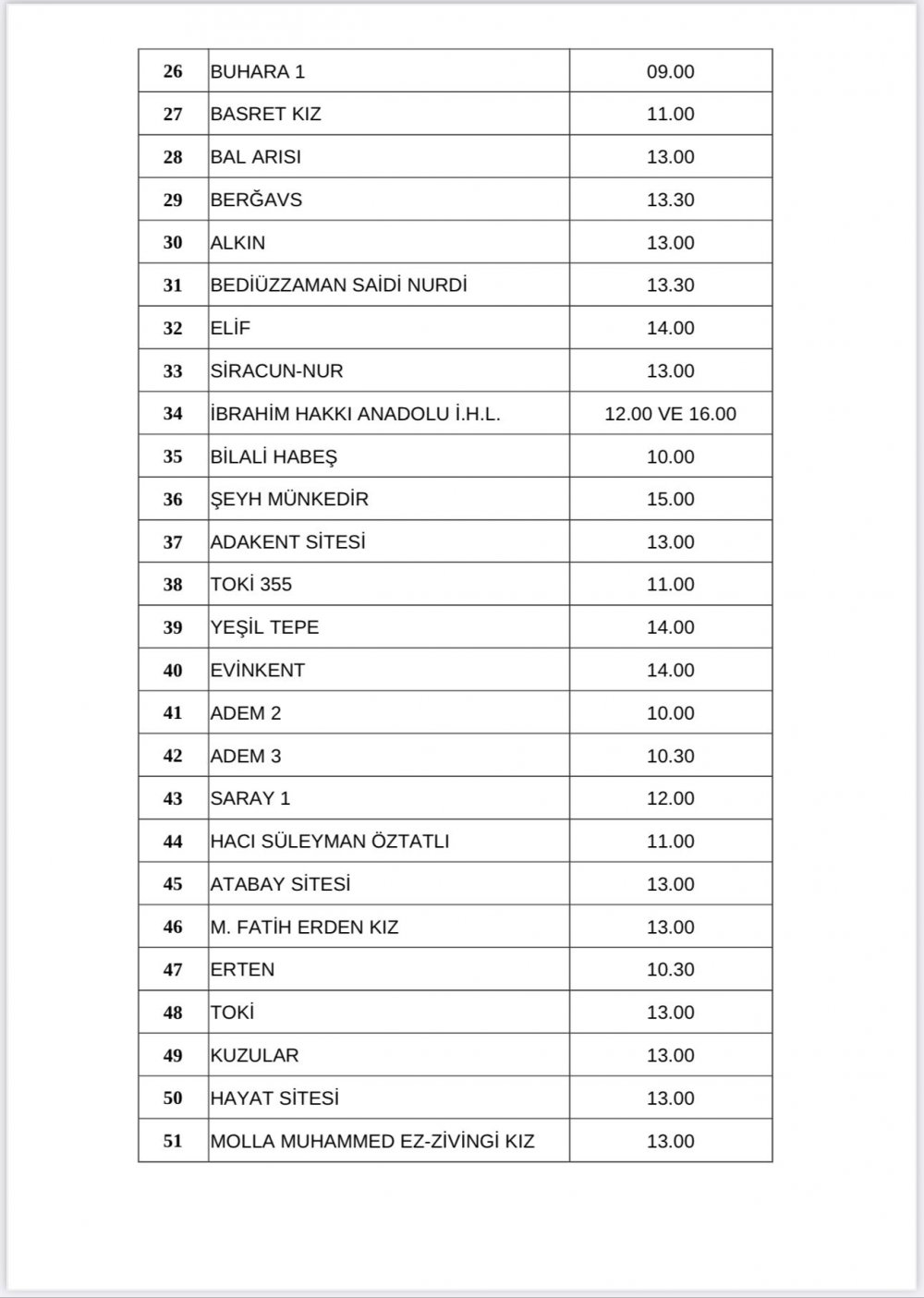 Ayrıca, Siirt Hacı Fethi Serin, Hacı AbdulHakim Sancak Çarşı Camii ve Üniversite Camii’lerinde Tefsirli Mukabele okunacaktır.