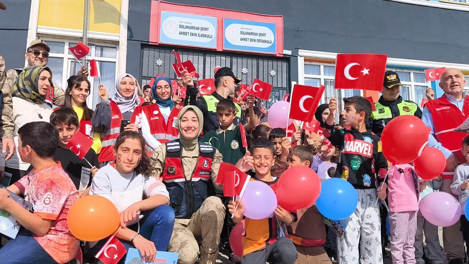 Bu kapsamda Merkez İlçe’de bulunan Doluharman Şehit Ahmet Ekin İlkokulu ve Ortaokulu’nu ziyaret eden Jandarma ekipleri, öğrencilerle bir araya geldi.