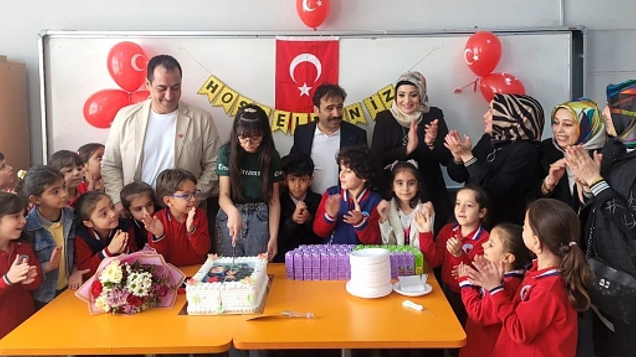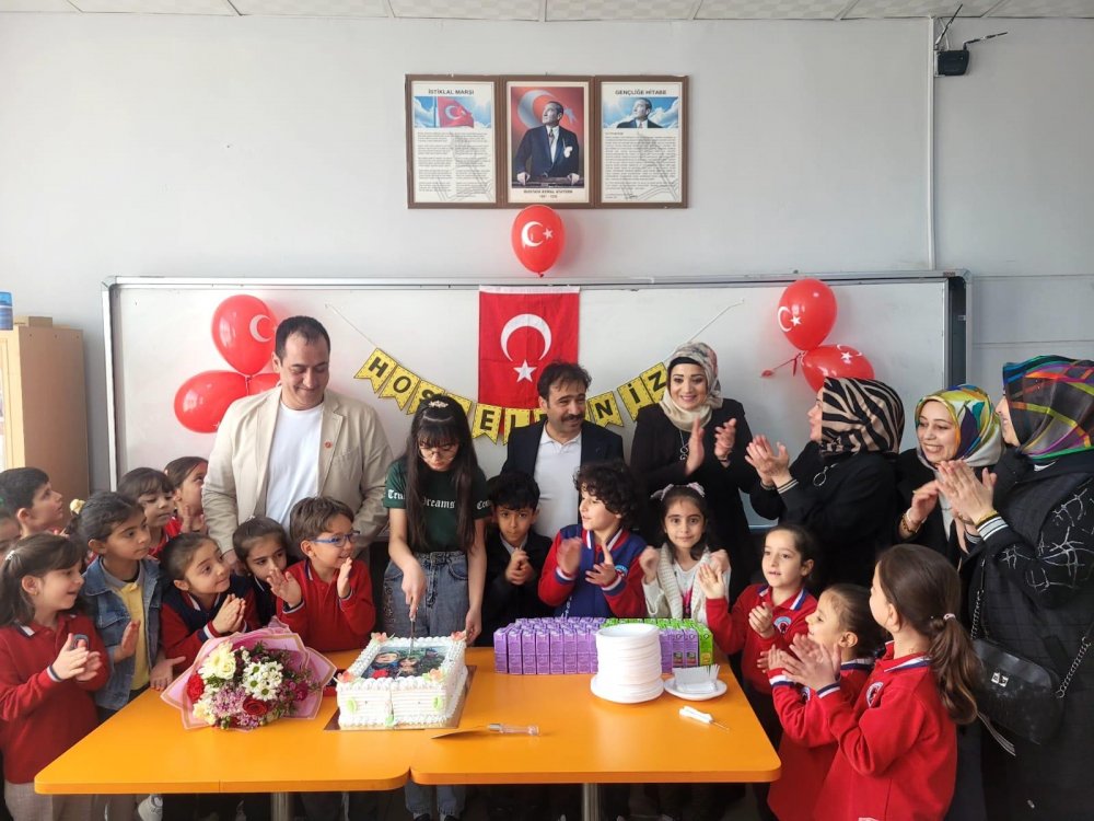 Öğrenciler, misafirlerine çiçekler takdim ederken, şiirler ve teşekkür mesajlarıyla şehidimizin ailesine olan minnetlerini dile getirdi.