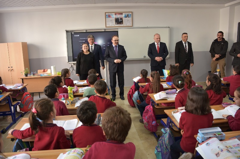 Okulda incelemelerde bulunarak, öğretmen ve öğrencilerle bir araya gelen Vali Kızılkaya, "Türkiye’mizin yarınları olan, tüm gayretimizin ve umudumuzun kaynağı sevgili çocuklarımızı başarılı bir geleceğe birlikte hazırlıyoruz.
