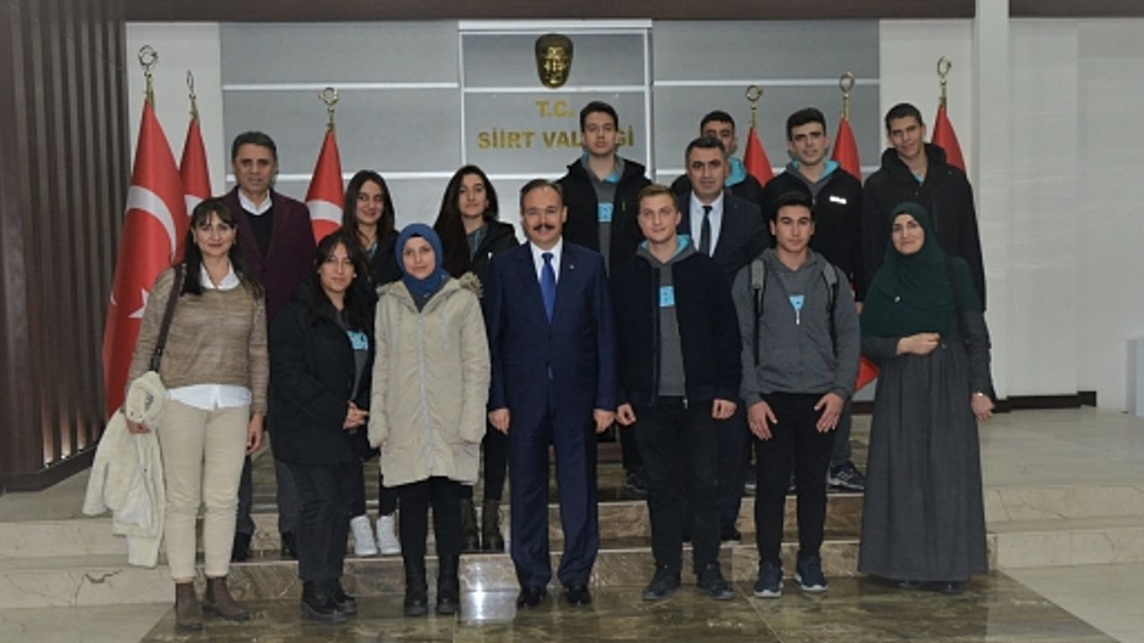 Vali/Belediye Başkan Vekili Dr. Kemal Kızılkaya, Siirt Sosyal Bilimler Lisesi Okul Müdürü Mahfuz İleri, Öğretmen ve Öğrencileri makamında kabul etti.