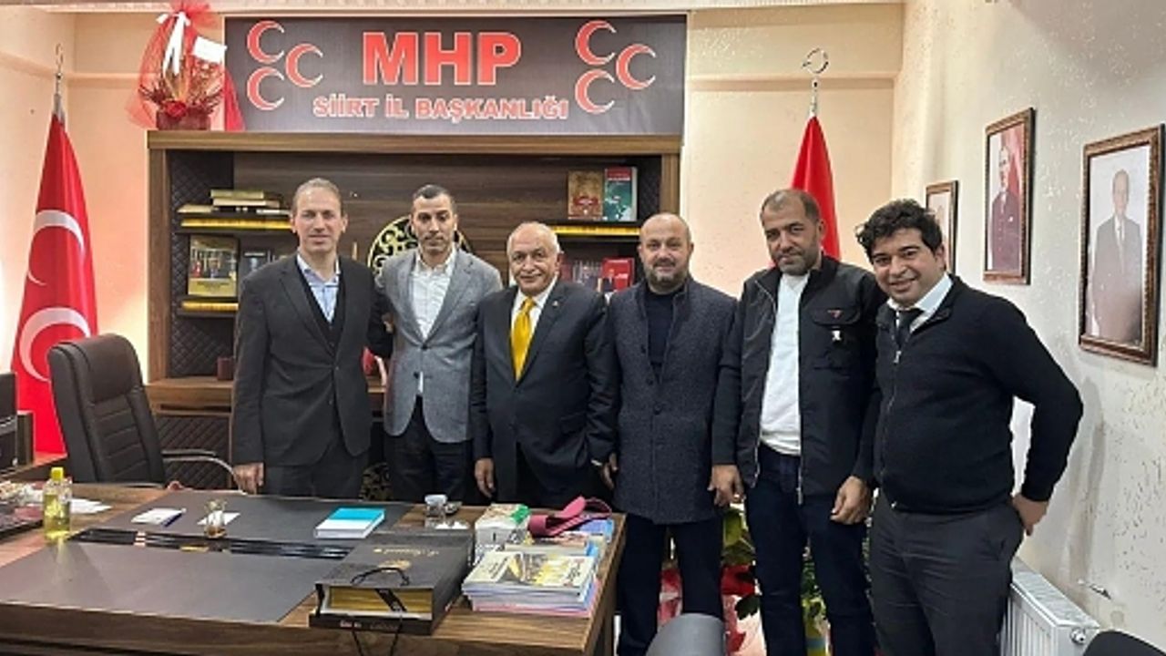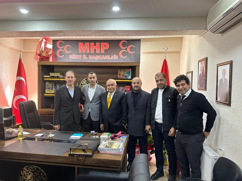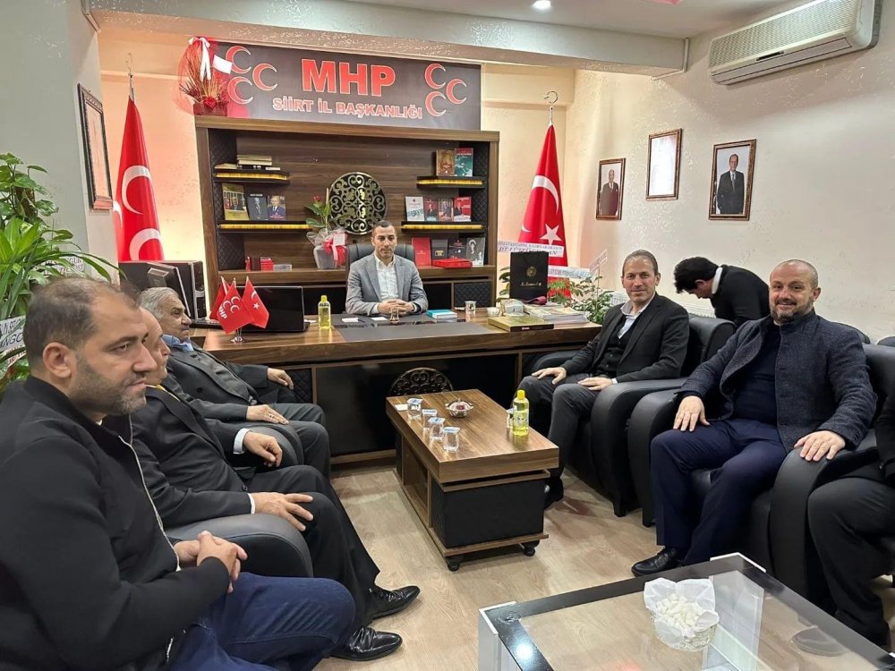Önceki Dönem AK Parti İl Başkanı ve Siirt Ticaret Sanayi Odası Başkanvekili Fuat Özgür Çalapkulu, Başkan Yardımcısı Kadir Demirhan ve beraberindekiler Genel Merkez tarafından Milliyetçi Hareket Partisi (MHP) iİ Başkanlığına getirilen Cengizhan Tükenmez'e hayırlı olsun ziyaretinde bulundular.