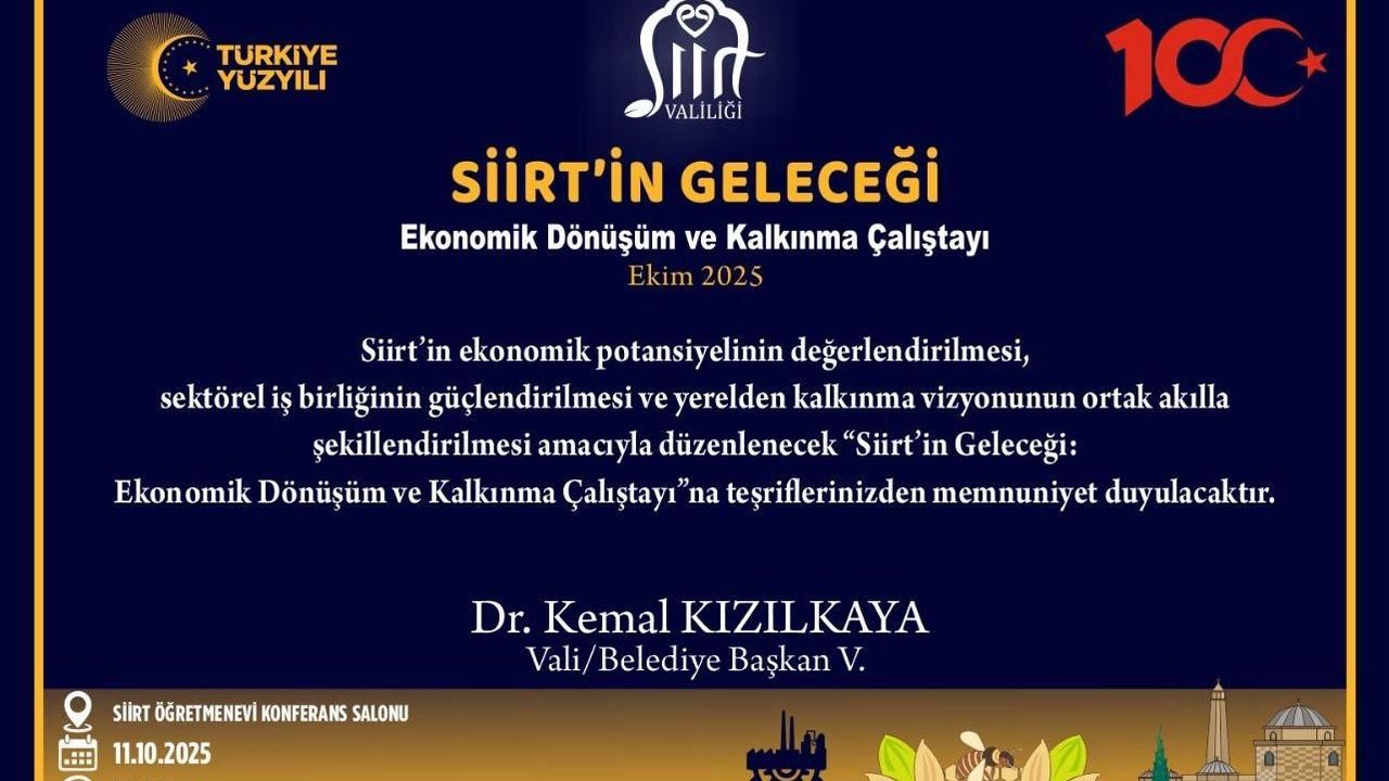 Siirt’in ekonomik vizyonuna katkı sağlayacak çalıştay, 📍 Siirt Öğretmenevi Konferans Salonu’nda, 📅 11 Ekim 2025 Cumartesi günü, 🕓 Saat 14.00’te başlayacaktır.