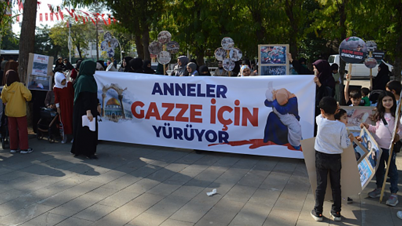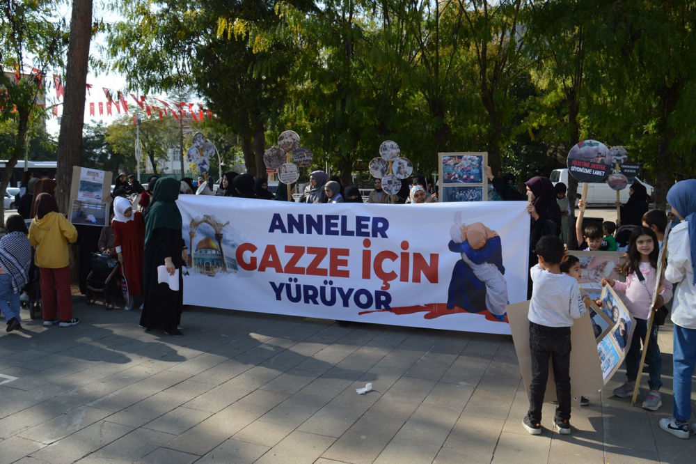 "Anneler Gazze için yürüyor" teması ile yapılan yürüyüş, 15 Temmuz Demokrasi meydanında kortej eşliğinde başladı.