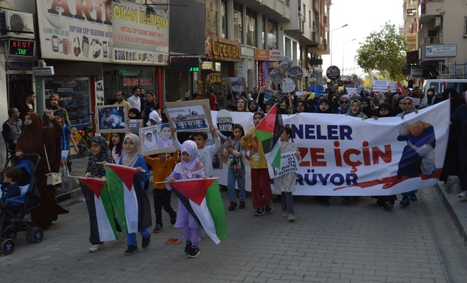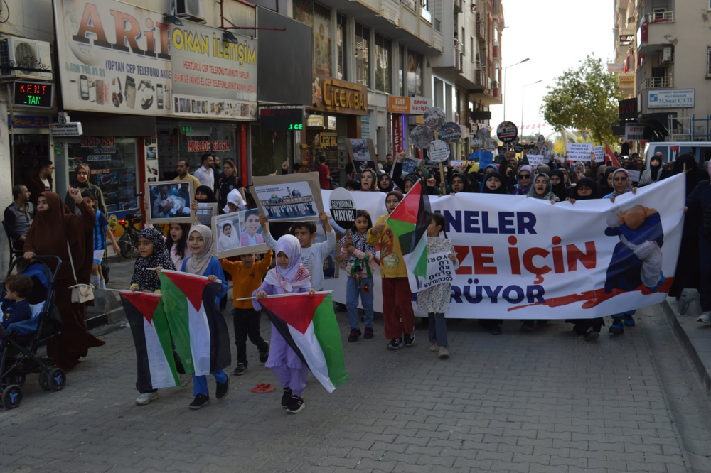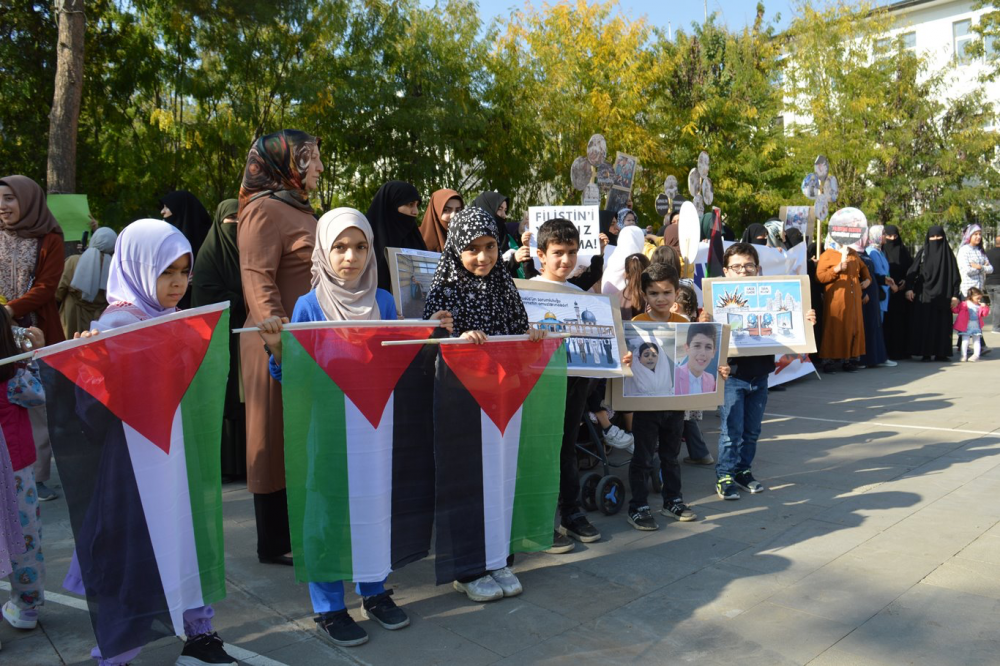 Evlerimize siyonistlerin silah sermayesini sağlayacak ürünleri almayacağız. Kararlılığımızla bu zulmün bir bedeli olacağını onlara göstereceğiz. Allah’ın izniyle bu mücadeleye omuz vererek tıpkı Filistinli annelerin yiğit evlatları gibi bizlerin de yetiştirdiğimiz evlatlar ümmetin gururu olacaktır." şeklinde sözlerini tamamladı.