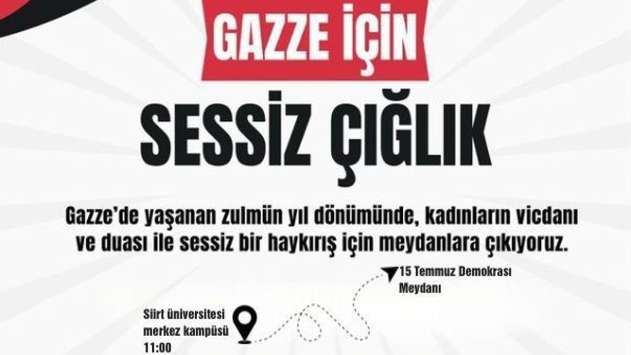 Etkinlik kapsamında yarın saat 11.00’de Siirt Üniversitesi Merkez Kampüsü’nde toplanılacak, ardından 15 Temmuz Demokrasi Meydanı’na kadar yürüyüş gerçekleştirilecek. Yürüyüşün sonunda ise basın açıklaması yapılacak.